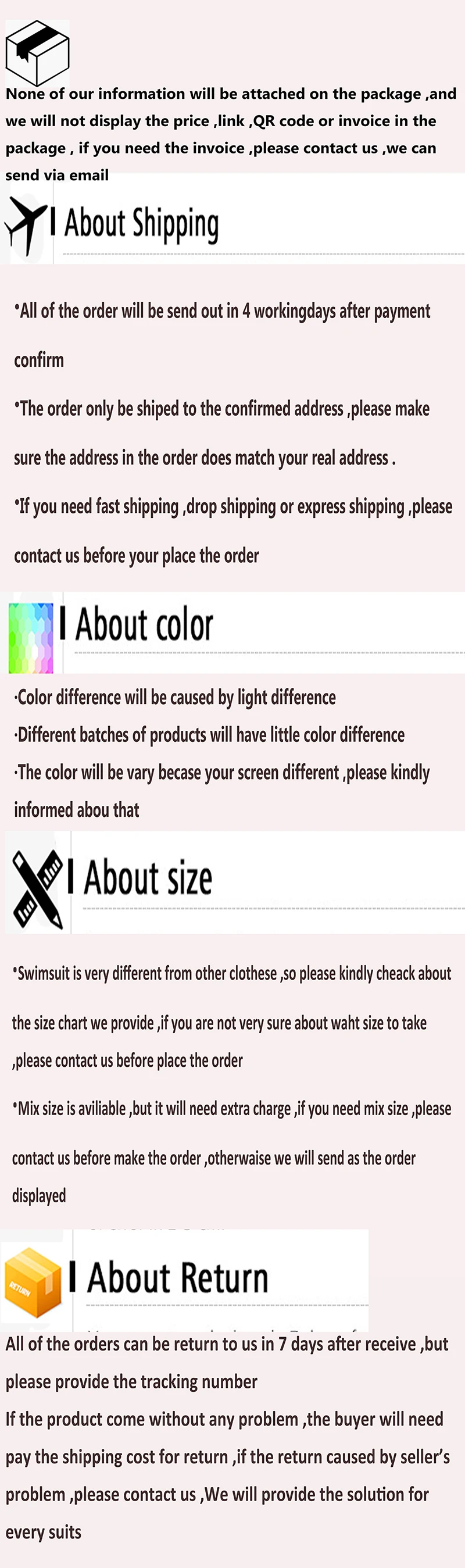 1. Пожалуйста, правильно измерьте свой размер груди, талии и бедер и выберите подходящий размер, сославшись на «таблицу размеров». Размеры могут отличаться на 1-3 см в связи с тем, что замеры выполняются вручную, могут измерения (1 дюйм = 2,54 см, 1 см = 0,39 дюймов).2. Из-за разницы между компьютерными мониторами, огнями, фотографическим оборудованием и т. д. каждая партия продуктов будет немного отличаться, пожалуйста, обратитесь к фактическому товару, который вы получили.3. Если у вас есть другие вопросы по поводу размера, пожалуйста, свяжитесь с нашей службой поддержки клиентов.
