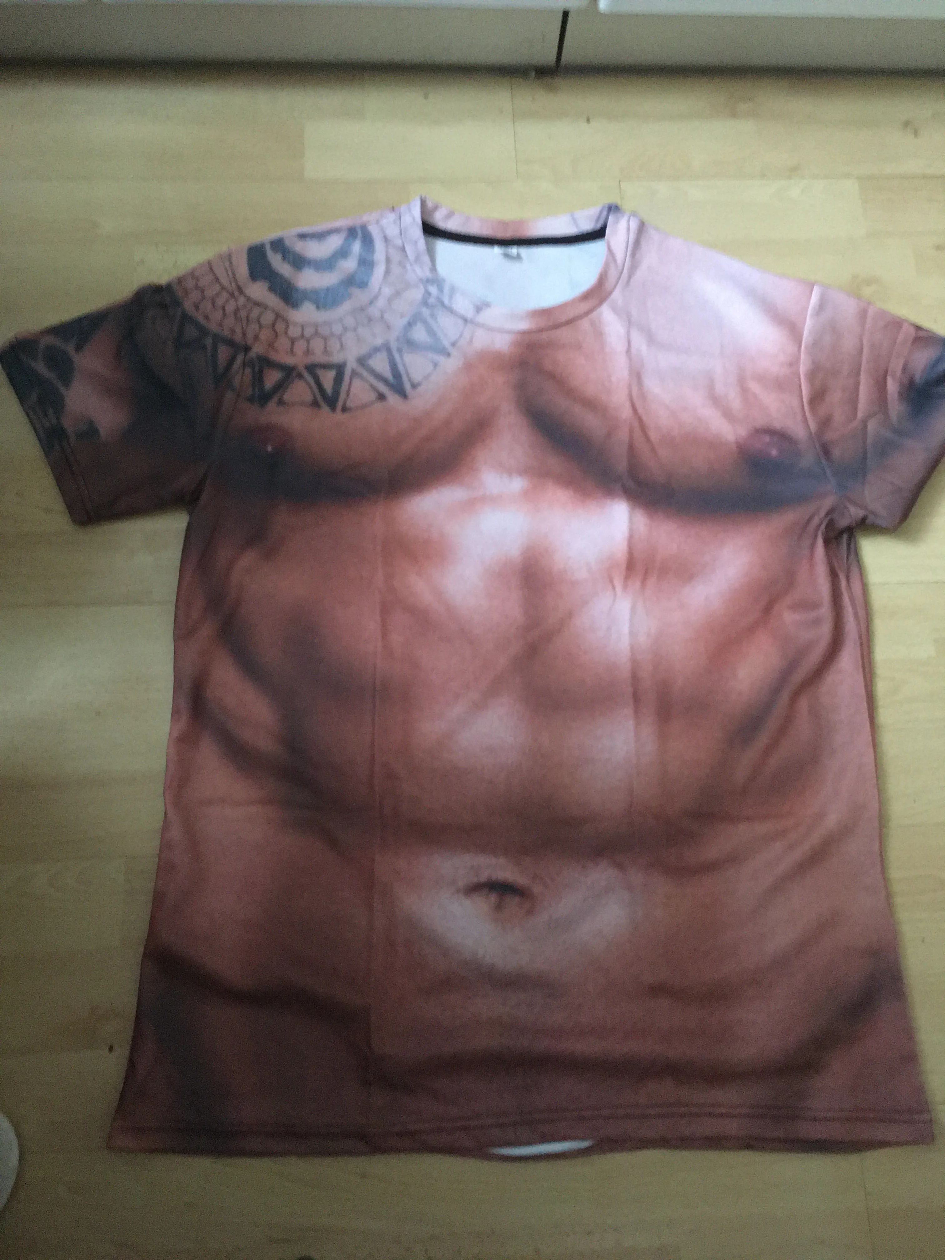 Рисунок непропорциональный - грудь в районе ключиц, на спине тоже рисунок груди. Качество материала футболки хорошее, принт четкий Ставлю 3, только потому что деньги вернули через спор Если это случайность (принт не на месте и рисунок груди на спине), то можно заказывать