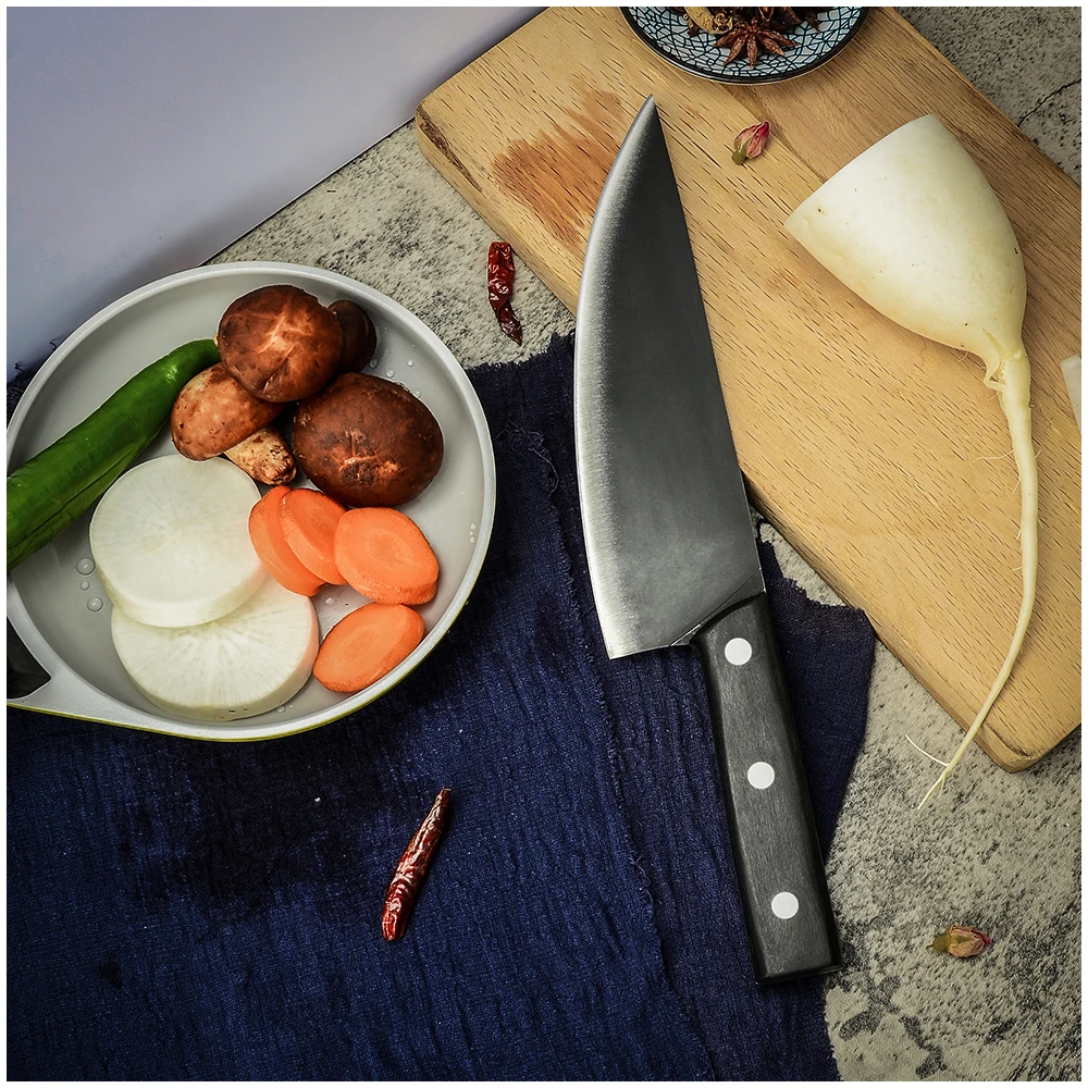 Нож шеф-повара из нержавеющей стали, 8 дюймов, с кожаным чехлом