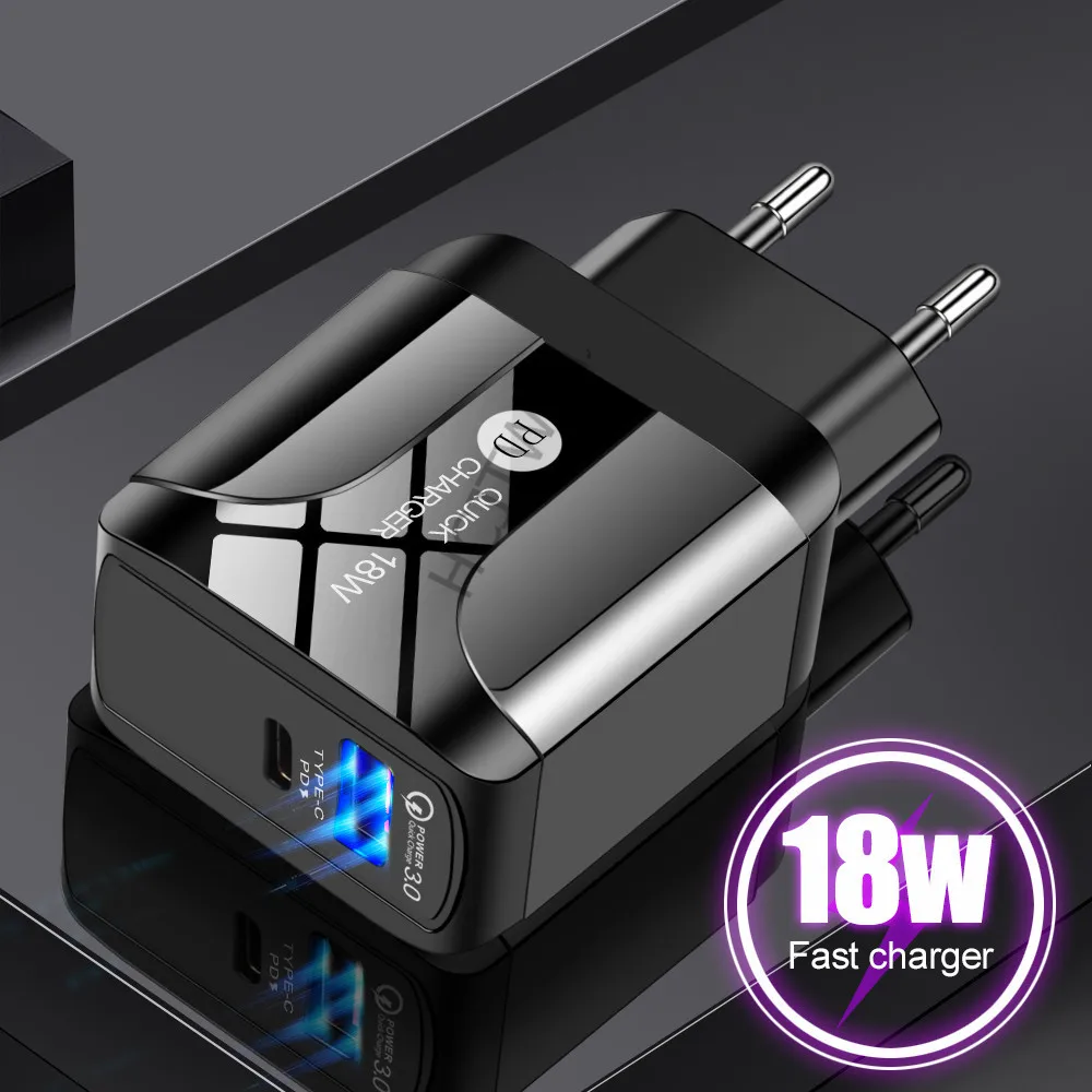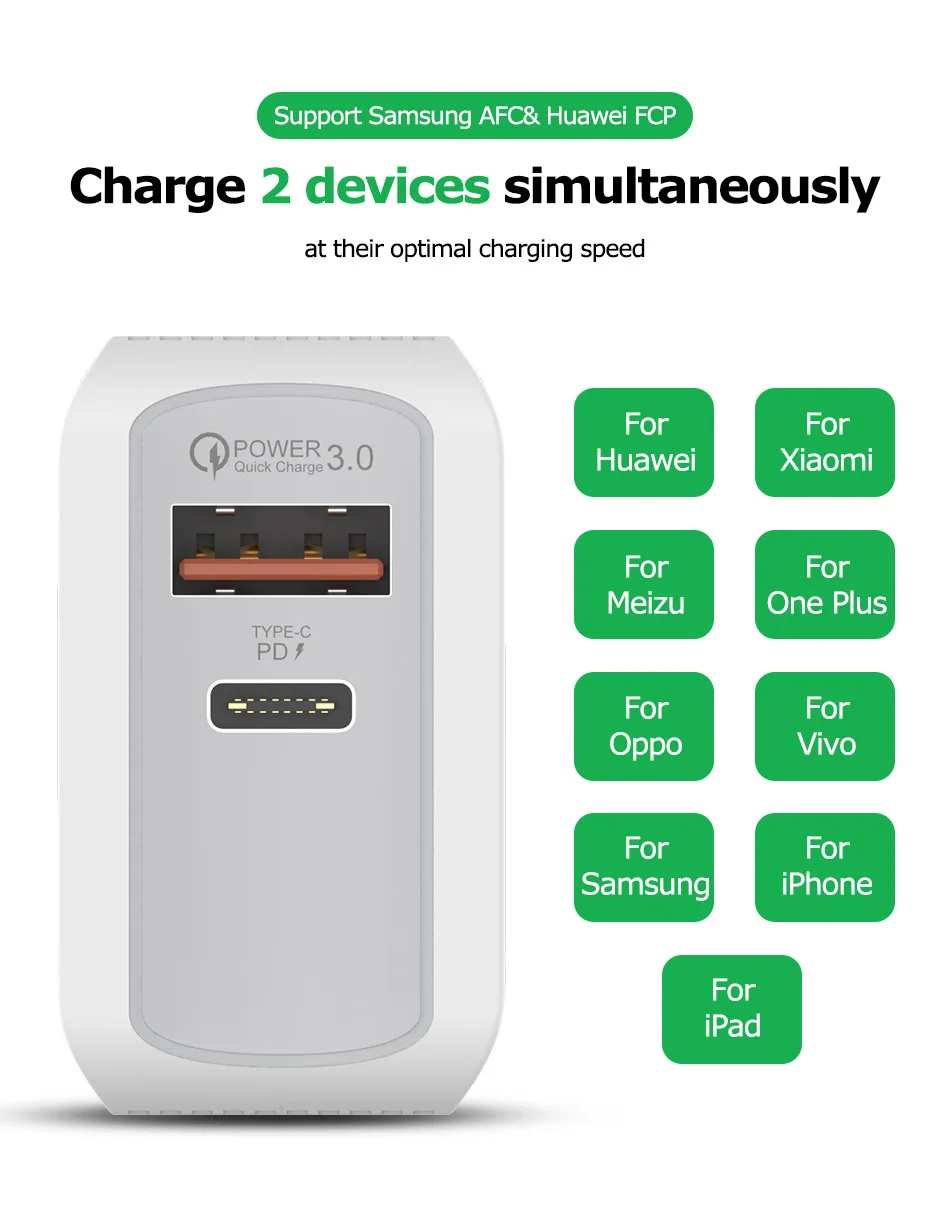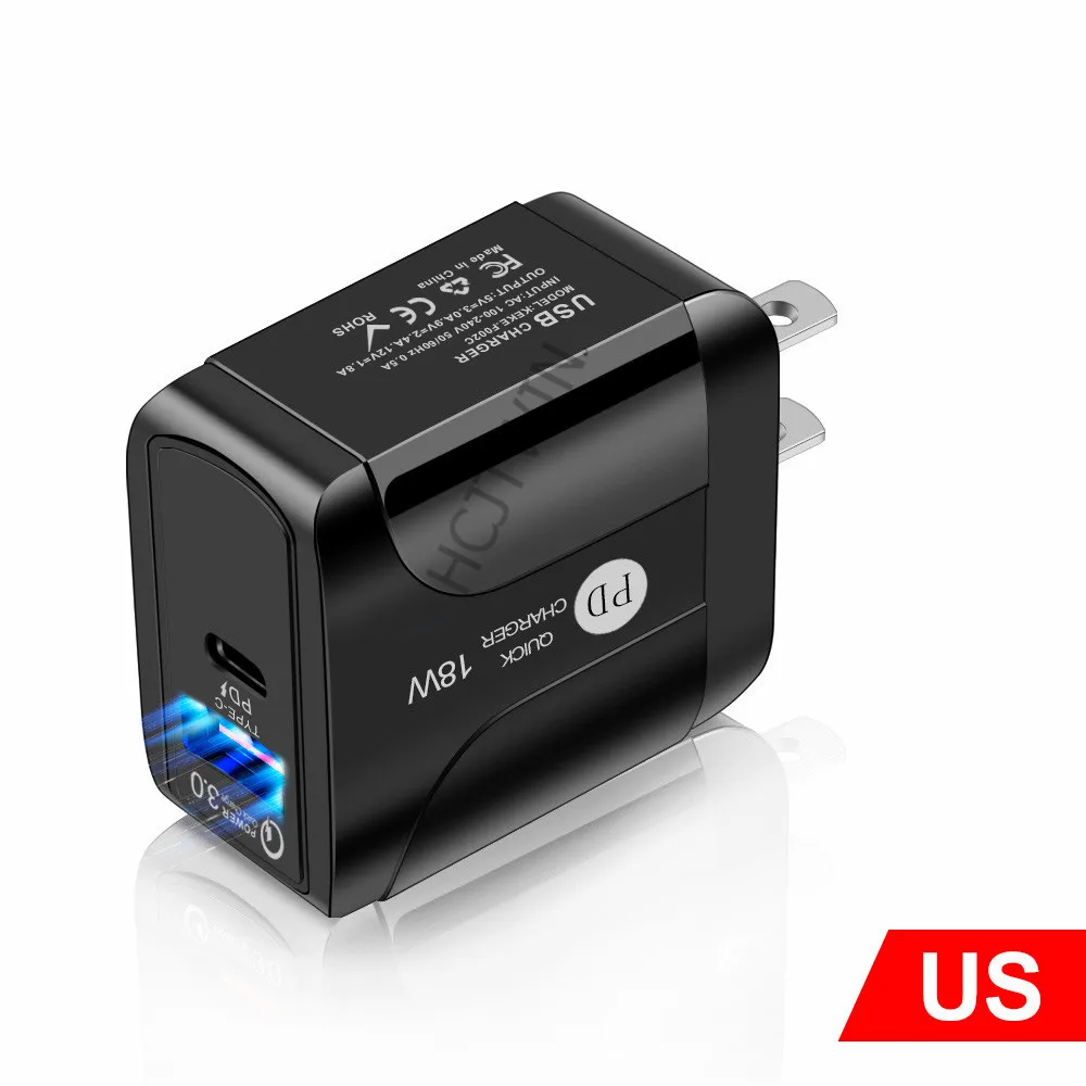 QC3.0 + PD18W pd 20W совместимый qc3.0 Быстрая зарядка мобильный телефон зарядное устройство, ЕС/США/Великобритания вилка поперечная Оптовая Быстрая зарядка
