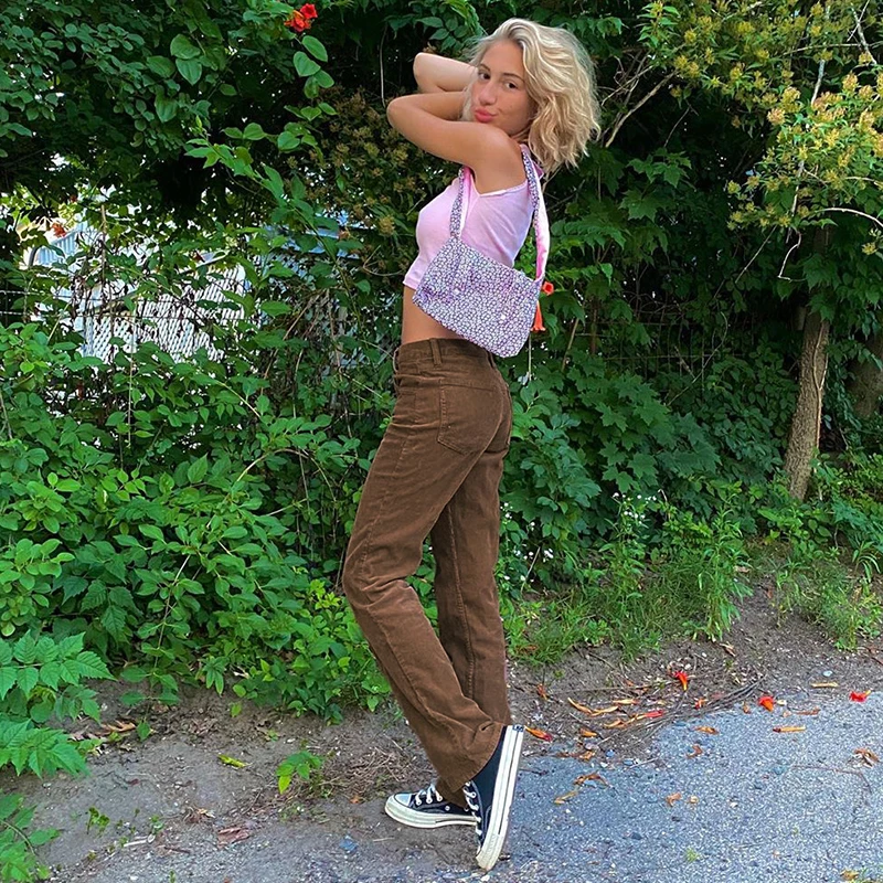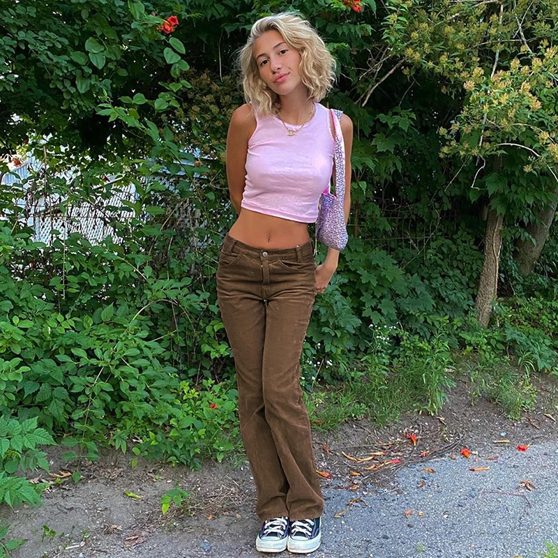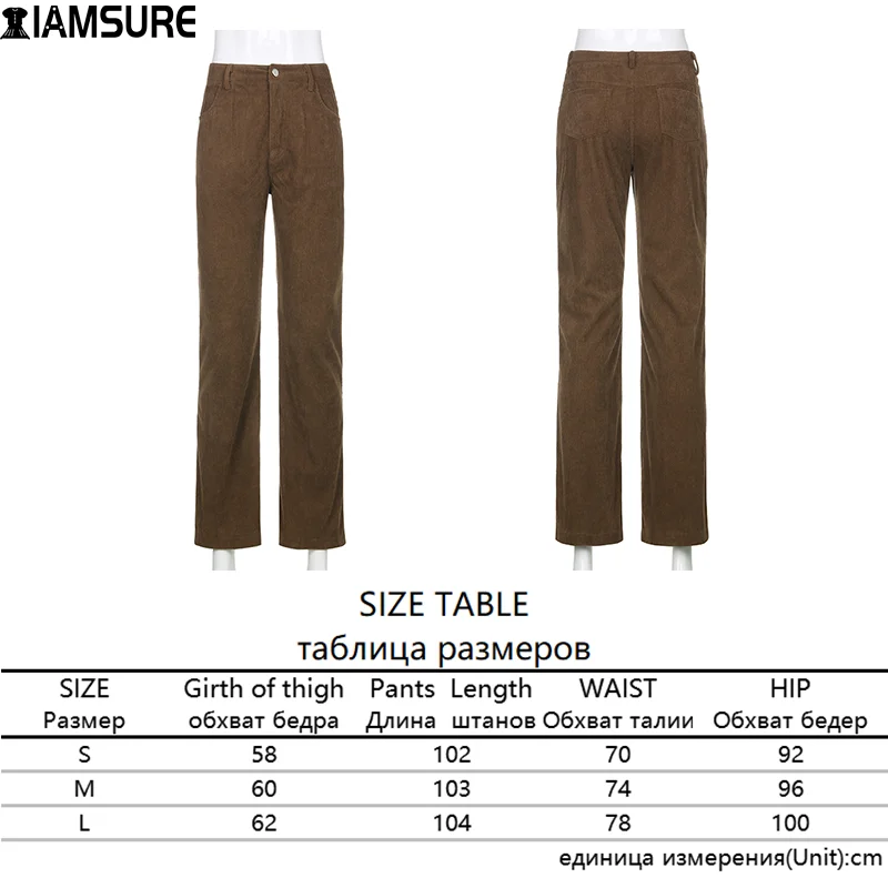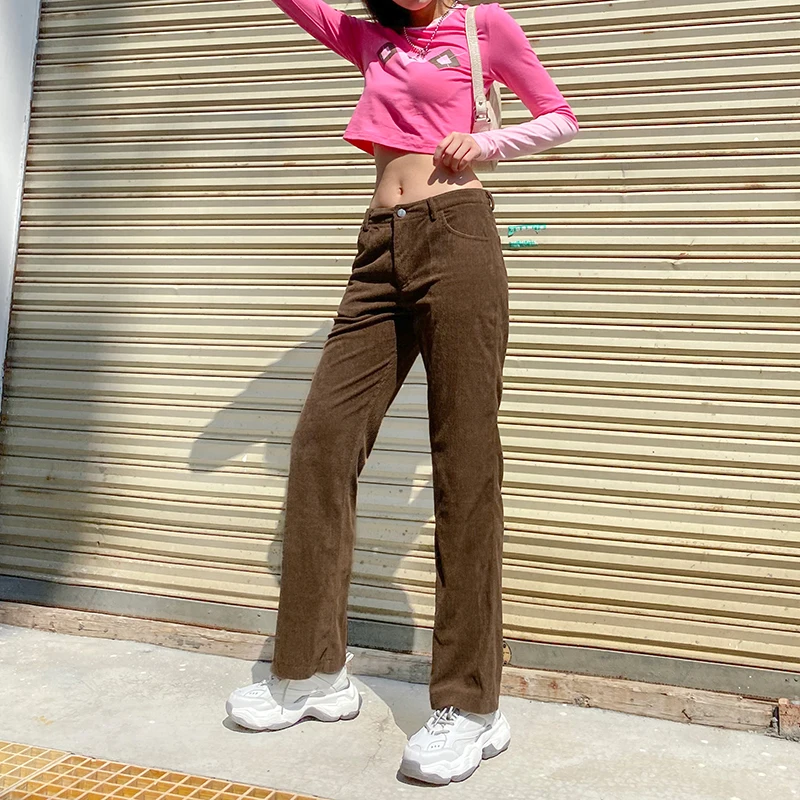 Брюки IAMSURE женские вельветовые с заниженной талией, винтажные повседневные Прямые Штаны с широкими штанинами, уличная одежда в стиле Харадзюку, коричневые