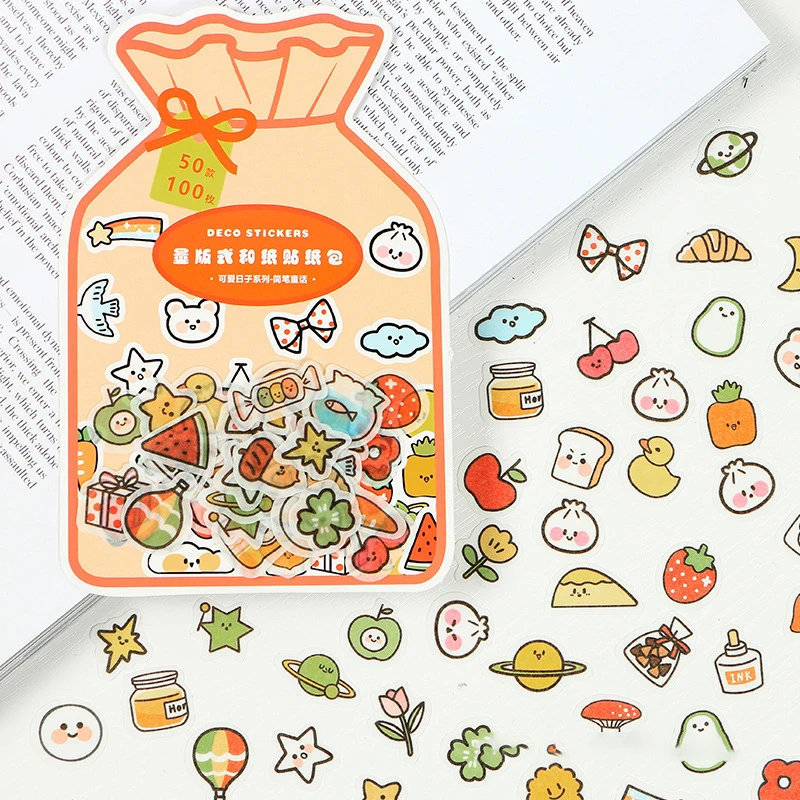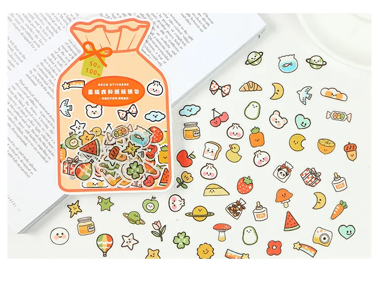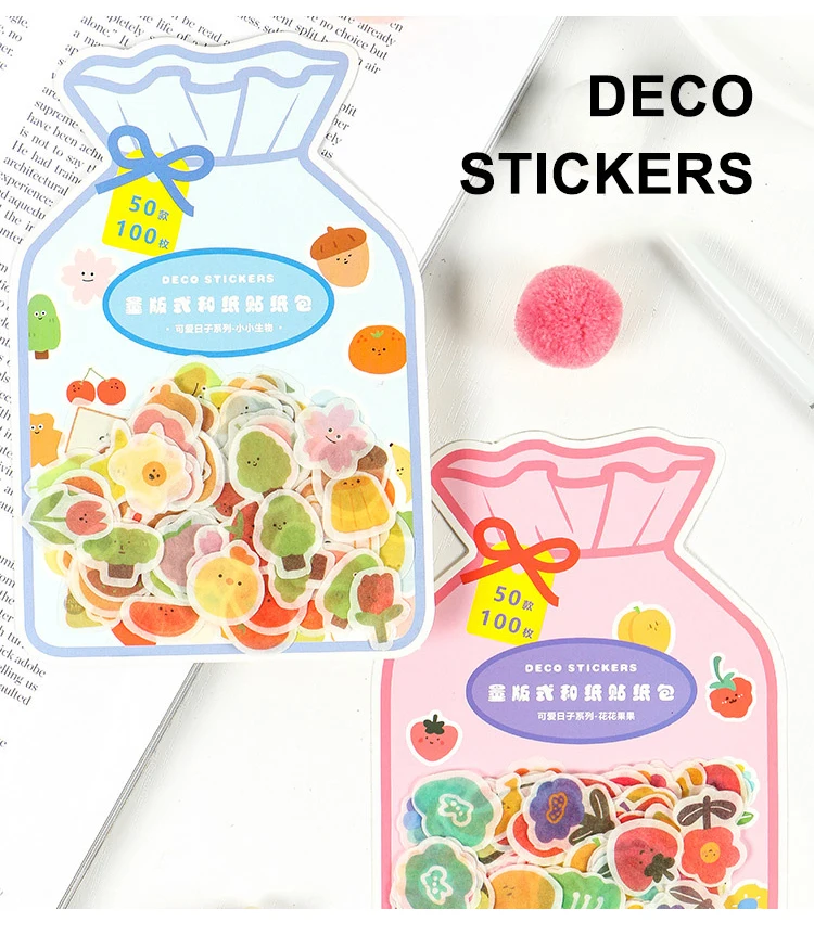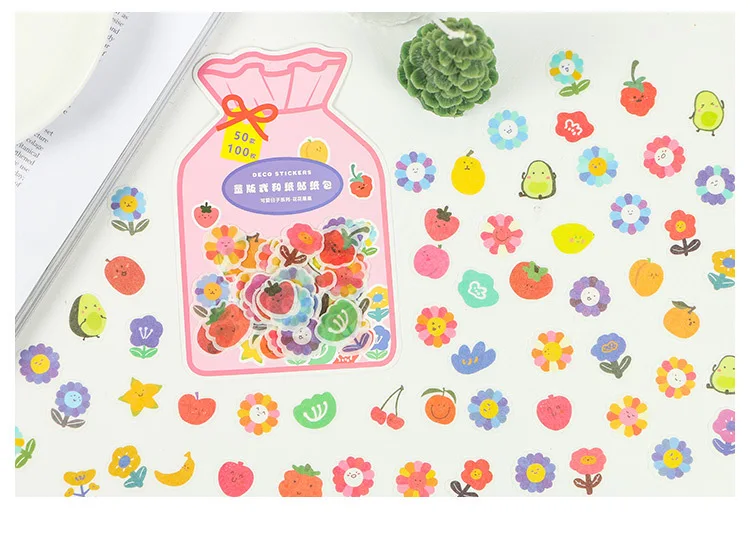 100 шт.упак. Kawaii Cute Flower фруктовая наклейка Diary маркерные ...