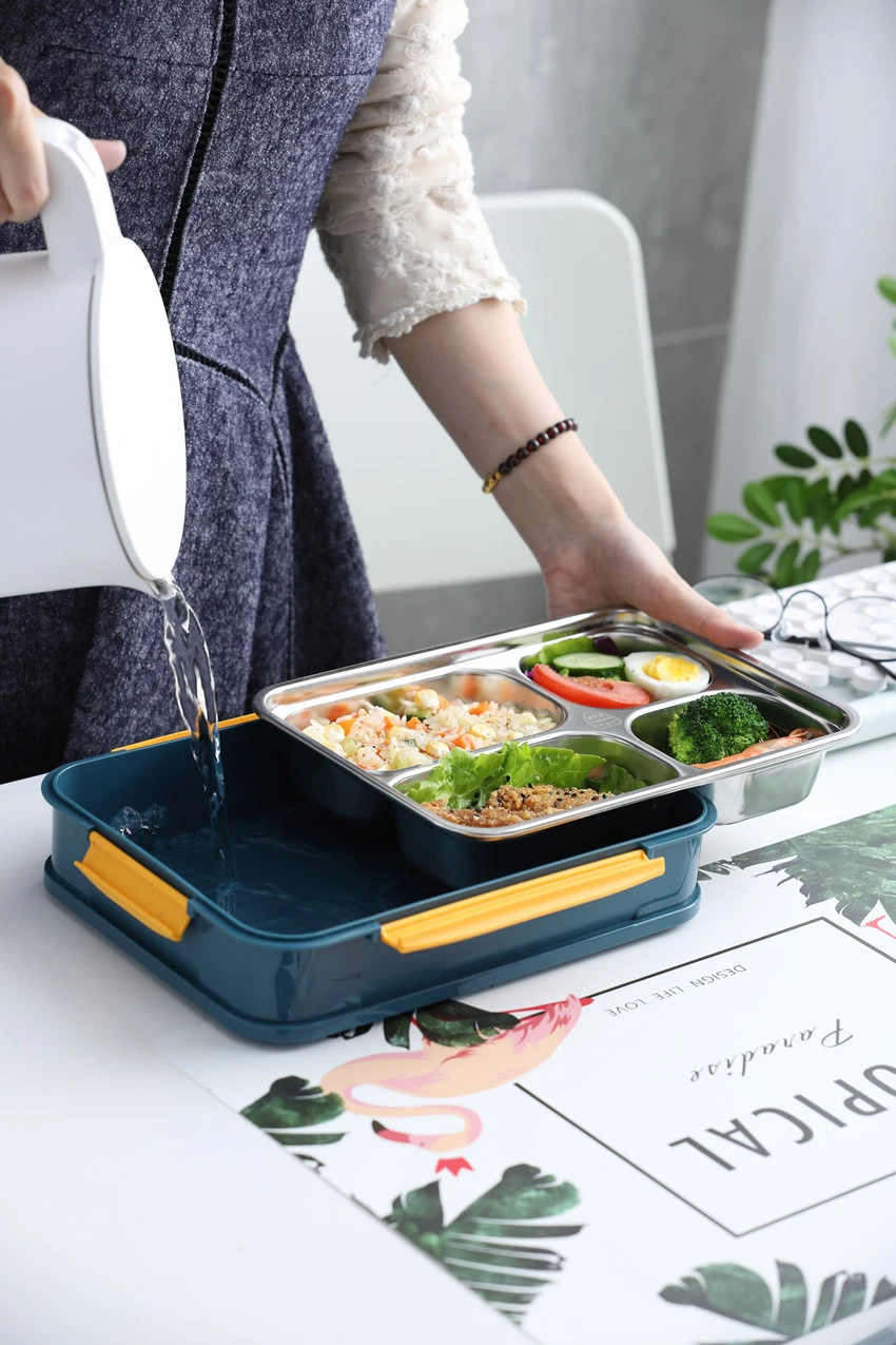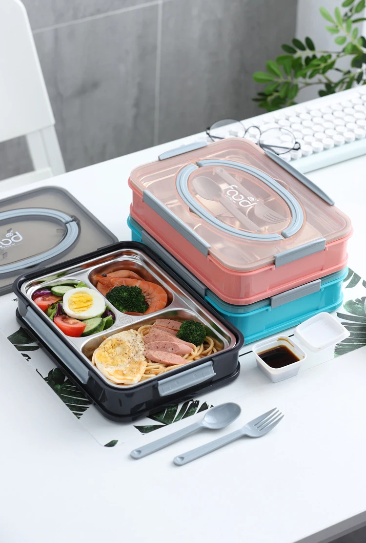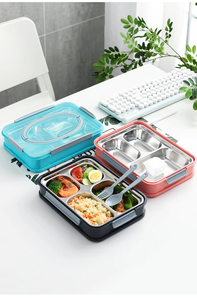 Ланч-бокс Bento в японском стиле из нержавеющей стали, герметичный Ланч-бокс для завтрака с подогревом еды для детей с отделением, контейнер для еды