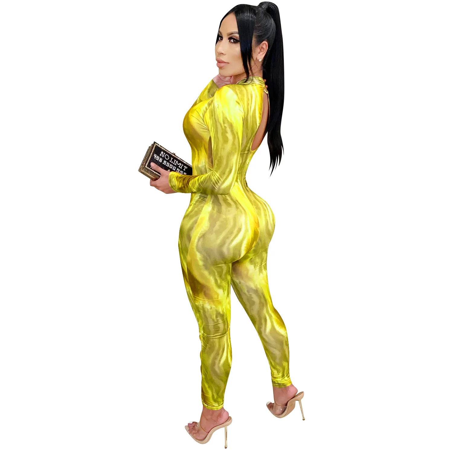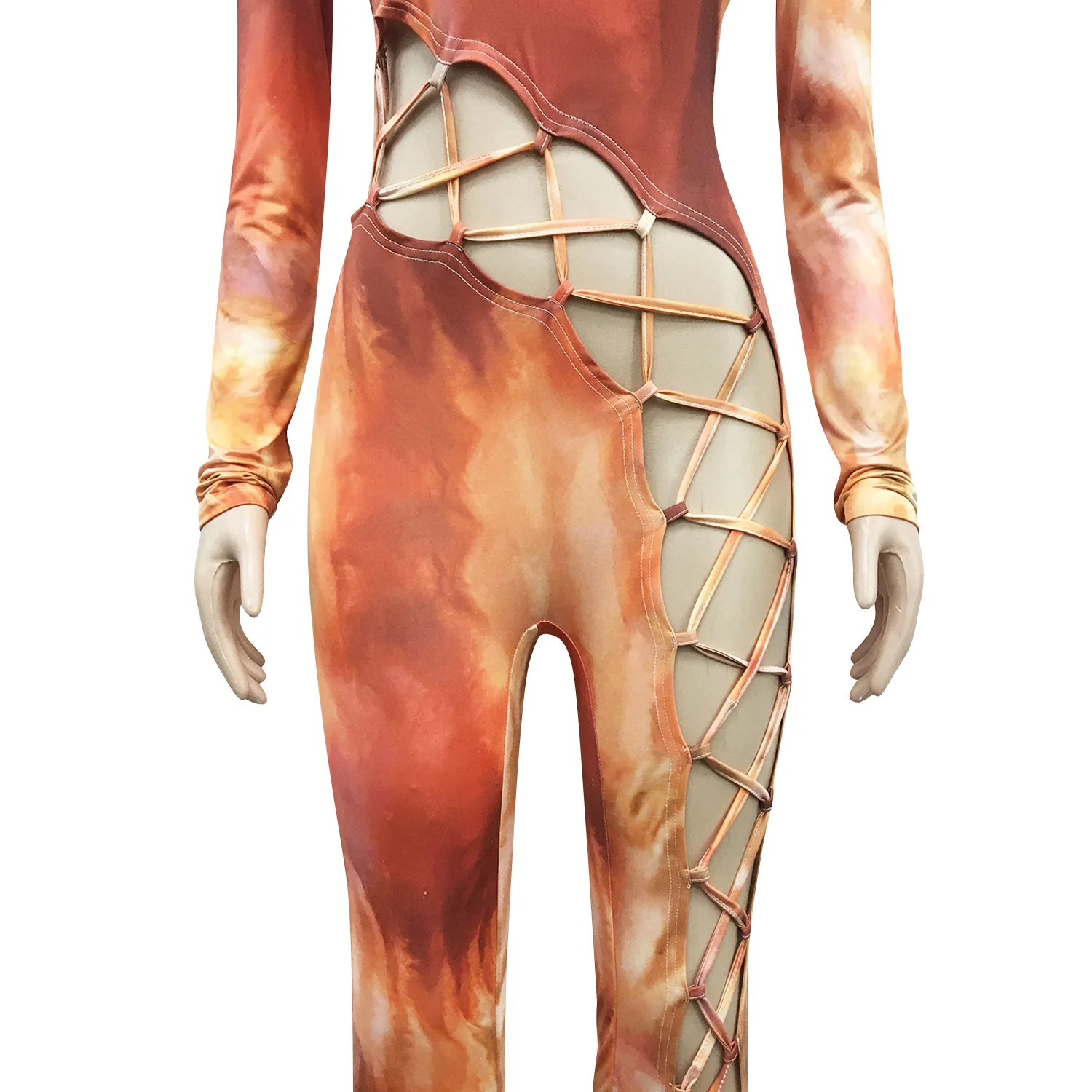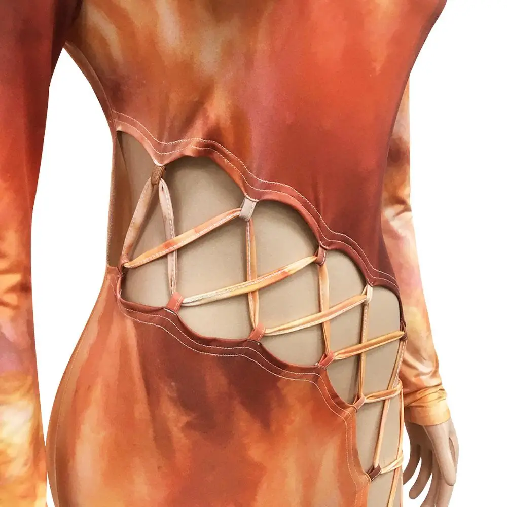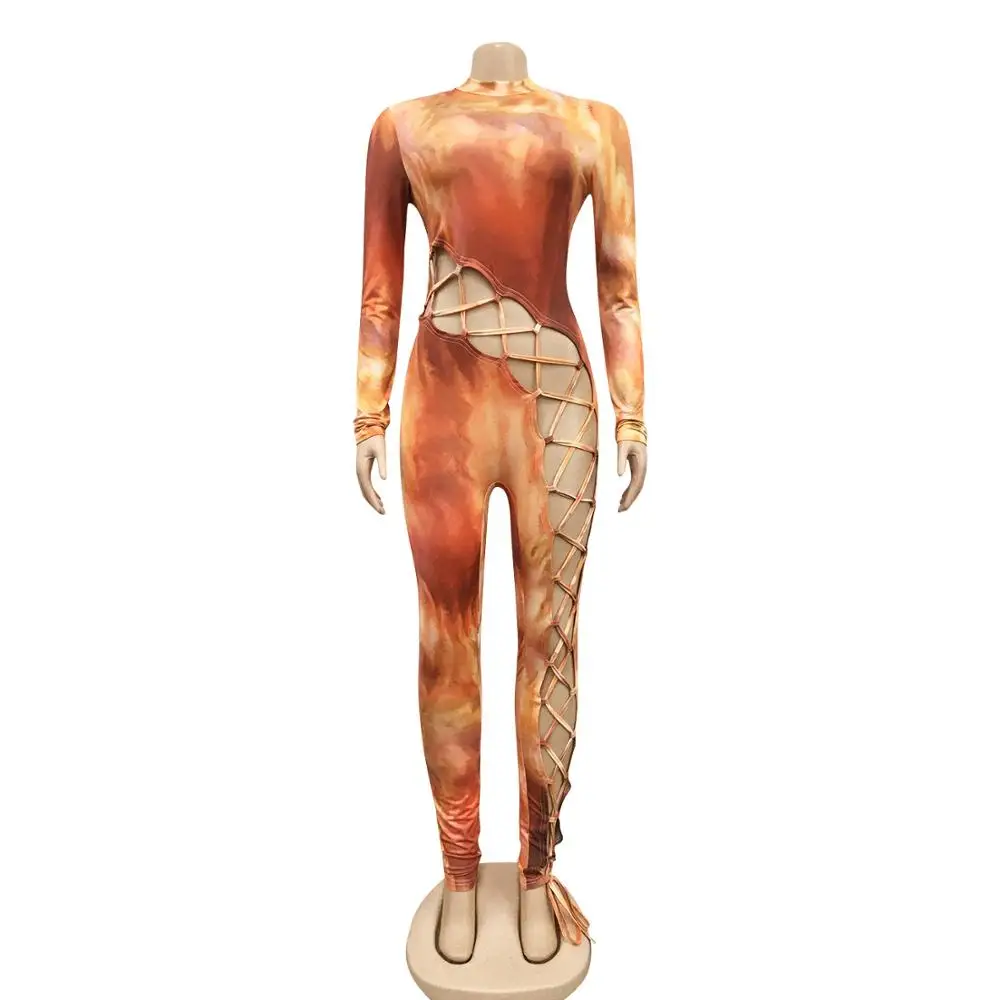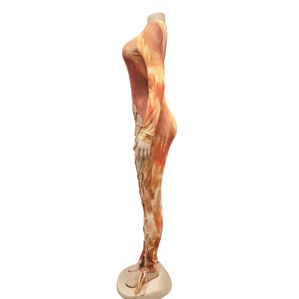 Женский комбинезон с принтом в виде галстука Adogirl, комбинезон на шнуровке с длинным рукавом и боковыми отверстиями, узкие брюки, комбинезон для ночного клуба