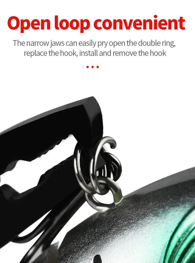 4. Несколько функций позволяют разрезать леску/провода; Разъемные кольца приманки; Снимать приманки и крючки; Включать нож и пилу.
