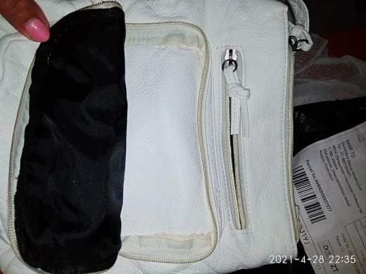 Очень хорошая сумочка, мягкая, лёгкая, пришла за 12 дней, структура материала похожа на кожу, немного в одном кармашке был не прихвачен подклад, продавец вернул 200 р. без проблем, всегда на связи, спасибо ему большое и за товар и за общение.