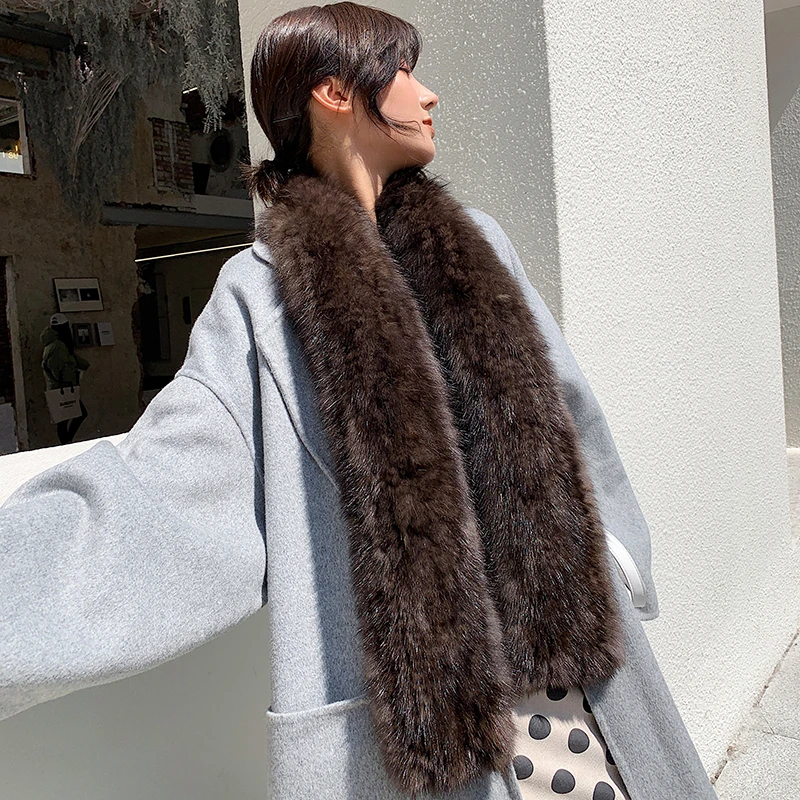 Женские вязаные шарфы из натурального меха соболиного цвета, длинные зимние шарфы из натурального меха норки, 2020 см, 150