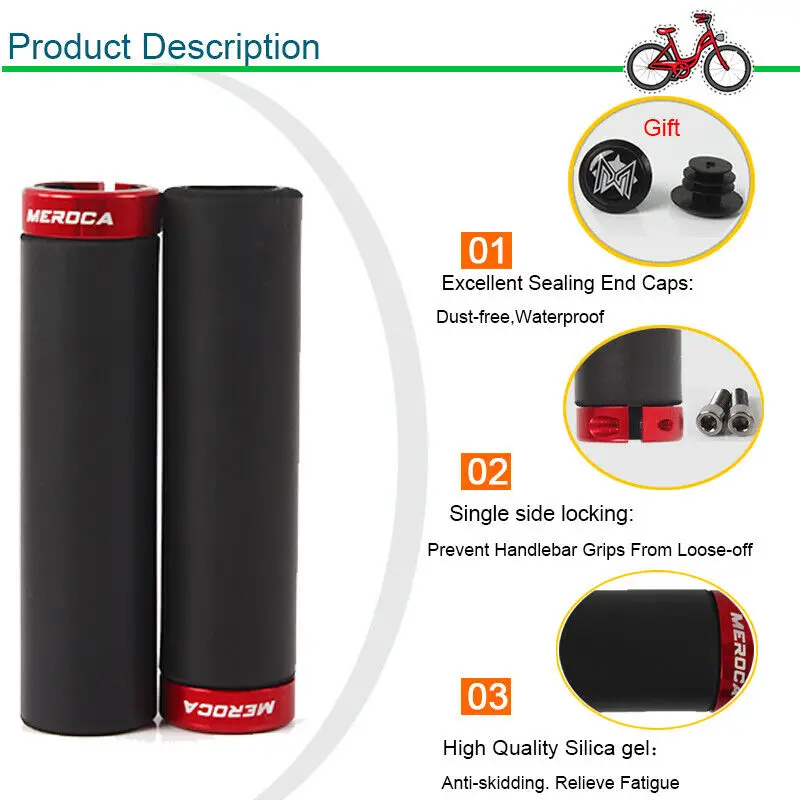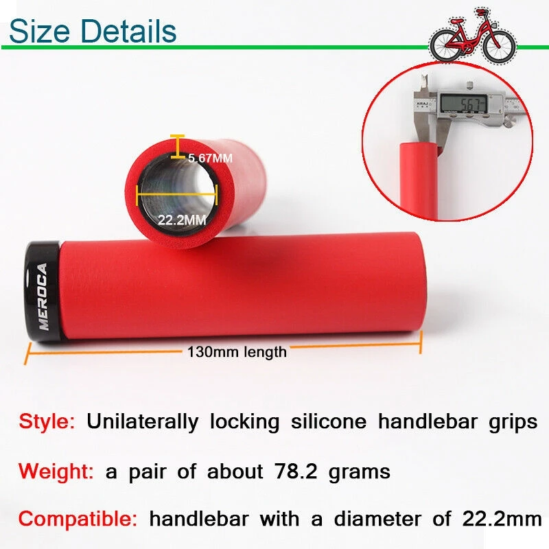 Описание:Бренд: MEROCAМатериал: алюминиевый сплав +СиликонЦвет: черный/красныйВес: 76 г, прибл. (вся пара содержит конечную вилку)Длина: 130 ммВнутренний диаметр: 22,2 ммВнешний диаметр: 32 ммТолщина: 5 ммПрименимо: Стандартный руль 22,2 мм (Горный/складной велосипед)Посылка включает в себя: 1 пара * ручки руля + торцевые вилкиУстановка: непосредственно установите его, закрепите его с помощью шестигранного инструмента