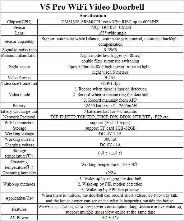 Умный видео дверной звонок V5 720P HD датчик ночного видения двухстороннее аудио смартфон приложение управление долгий срок службы батареи WiFi видео дверной звонок