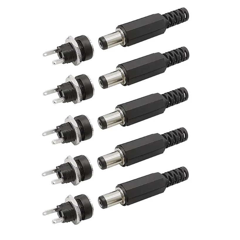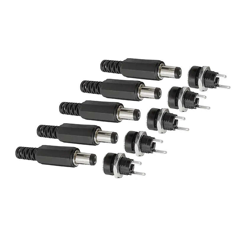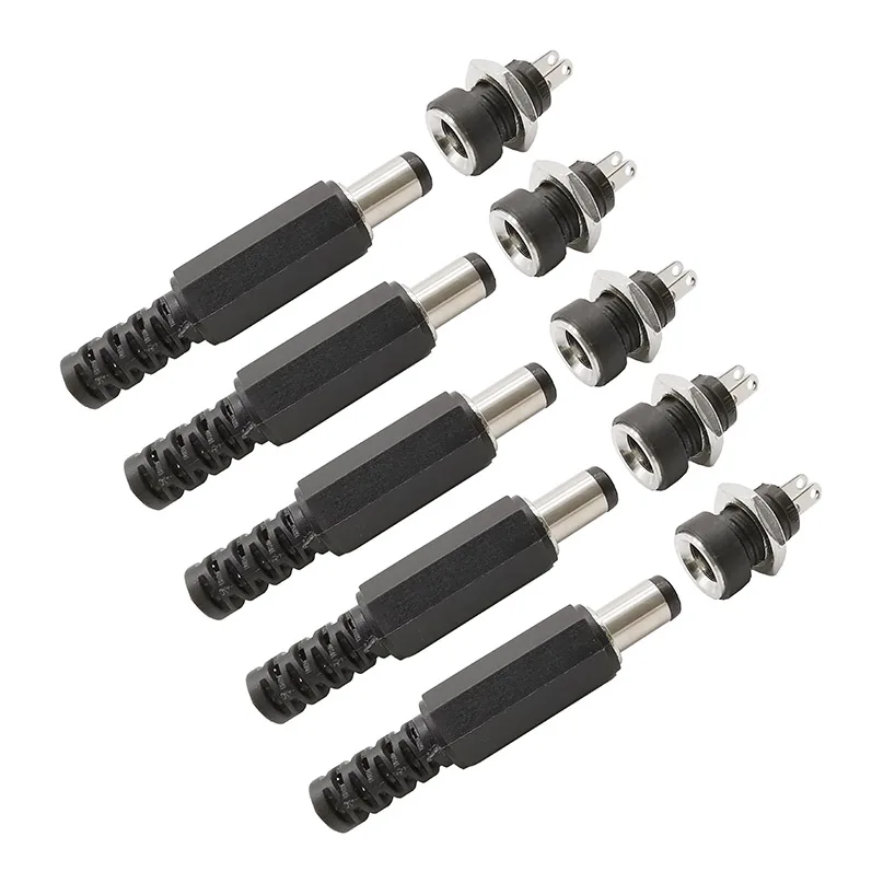 5 пар пластиковых штекеров постоянного тока 5,5 мм x 2,1 мм + гнездо питания постоянного тока DC-022B, гнездовой разъем для монтажа на панели, штекер питания постоянного тока 5,5*2,1