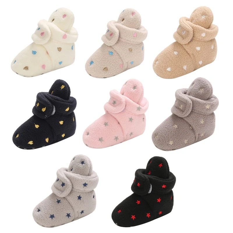 Однотонные теплые ботинки со звездами для новорожденных мальчиков и девочек, зимние и осенние Симпатичные дизайнерские хлопковые детские ботильоны с надписью Love, детская мягкая обувь для малышей