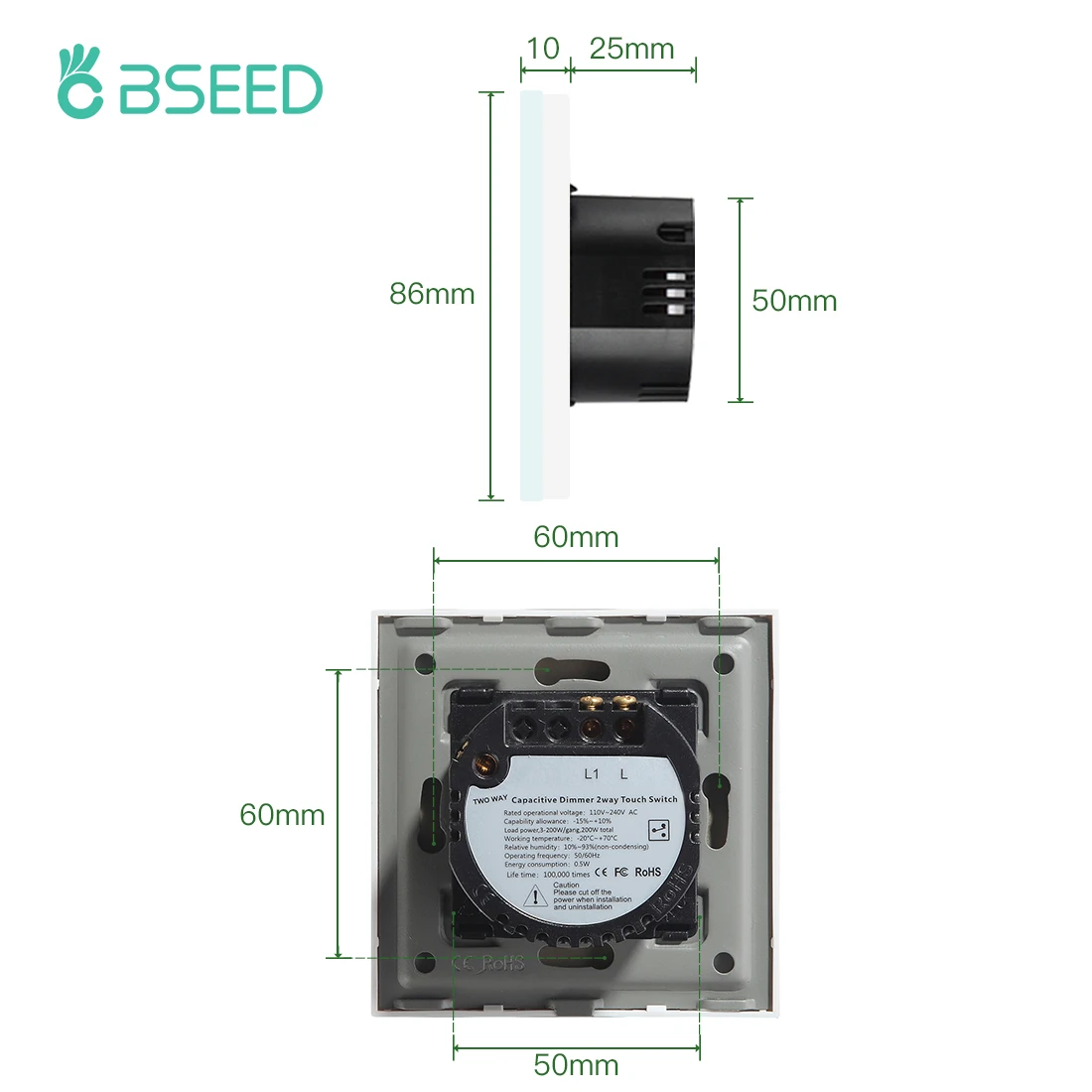 BSEED диммер сенсорный экран переключатель 1 банда 2Way светодиодный настенный светильник с регулируемой яркостью Настенные переключатели с длительным прессом диммер кристальная панель Темный светильник с подсветкой