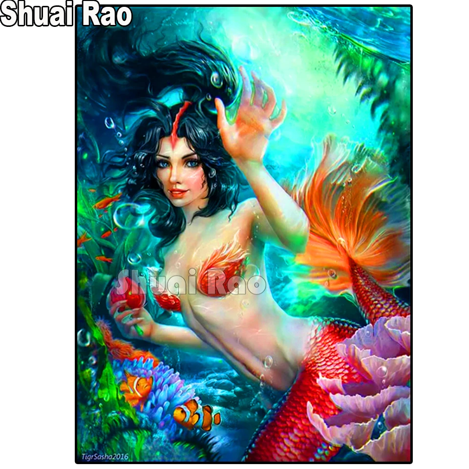 Русалка девушка 5d картинки, 3d Алмазная картина полный квадратный круглый пазл алмаз, алмазная картина с фантазийным искусством девушка подарок,