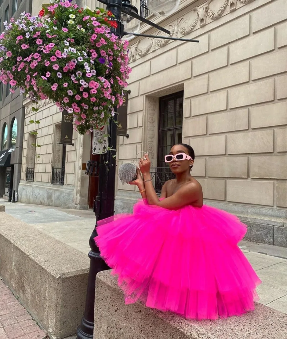Милое Тюлевое мини-платье с рюшами без бретелек, Пышное Бальное Платье цвета фуксии, женские вечерние платья, модная женская юбка-пачка, на заказ, дешево
