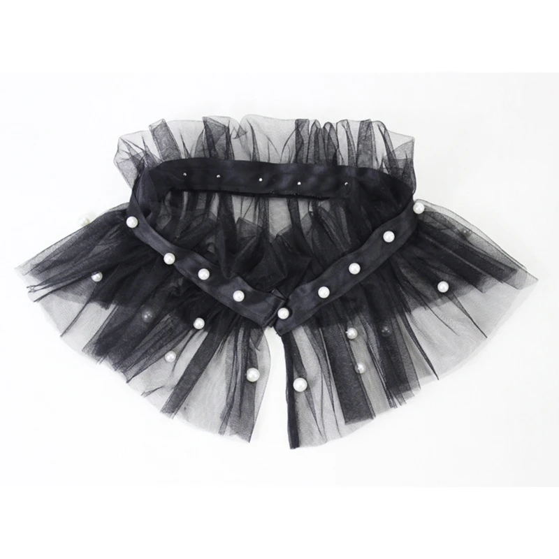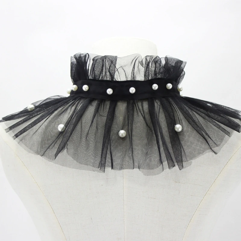 Женское колье с имитацией жемчуга и бусинами, плиссированная сетка, ложный воротник, винтажная викторианская горловина с рюшами, съемная вечерняя шаль, накидка, чокер