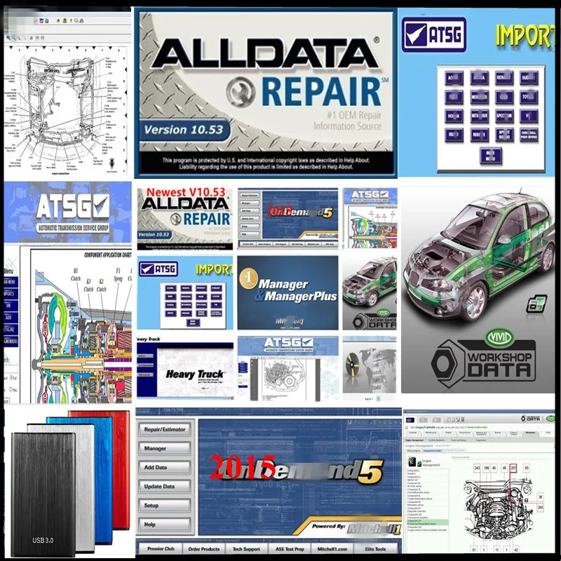 Программное обеспечение для ремонта автомобилей, 2020 Alldata All Data Горячая Распродажа, 10,53 митс, Chell OD 2015, яркая мастерская Atsg, elsa-win, жесткий диск 49in1tb