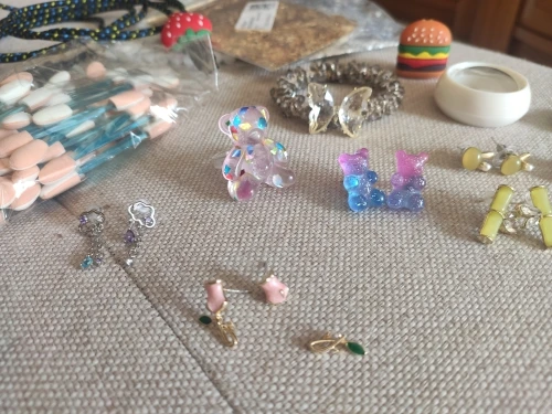 Милые жевательные наклейки серьги в виде медведя, красочный мультяш...