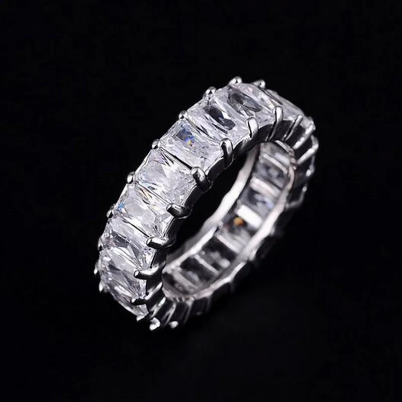 Обручальное кольцо вечности, из серебра 925 пробы, квадратное, с имитацией бриллианта, Размер 5,6,7,8,9,10,11,12