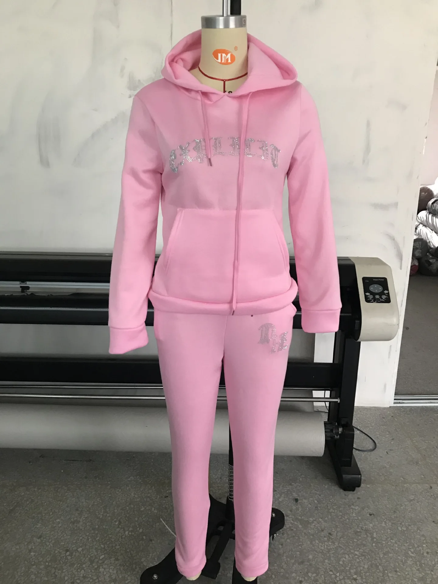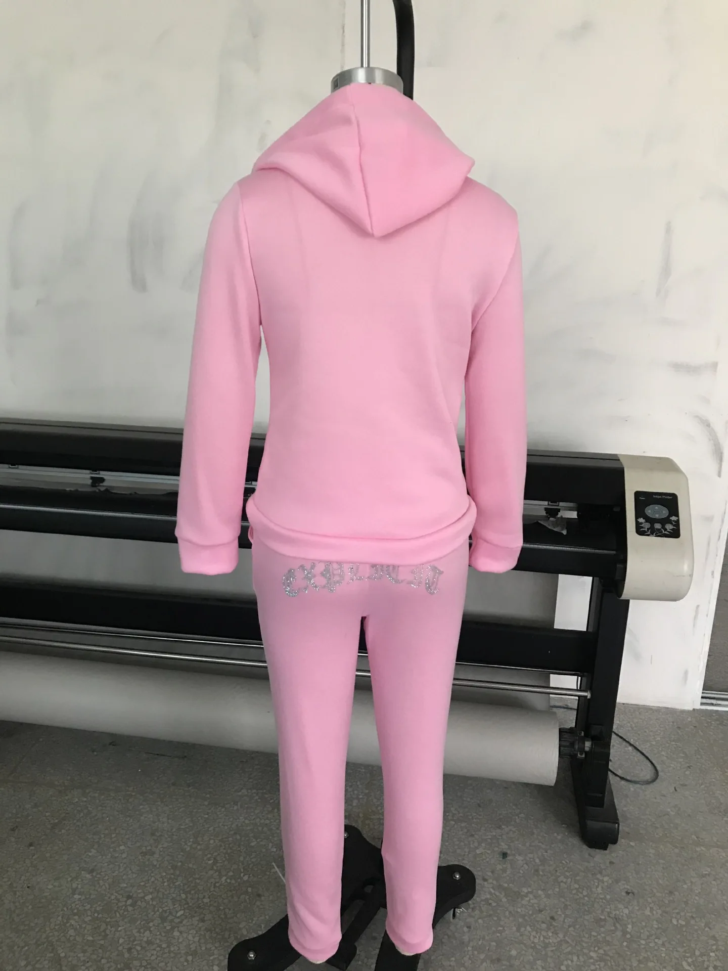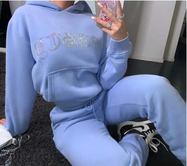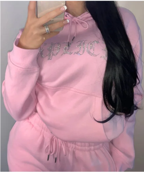 Костюм спортивный женский осенний, со стразами, с длинным рукавом