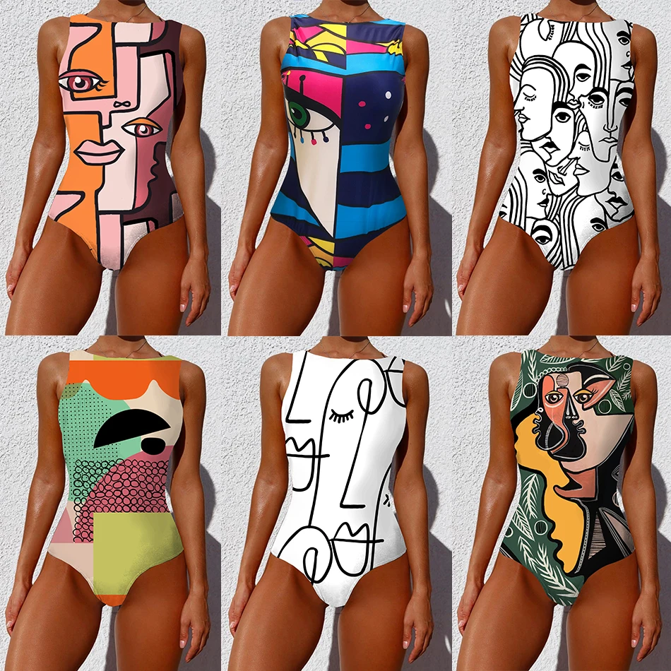 Печатные Одна деталь купальник в стиле граффити абстрактным принтом...