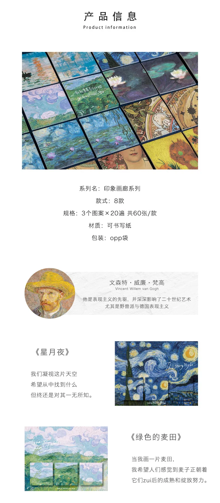 60 листовуп Ван Гог Блокнот наклейки бумаги для заметок на клейкой основе Скрапбукинг Diy милый блокнот дневник школа планирования