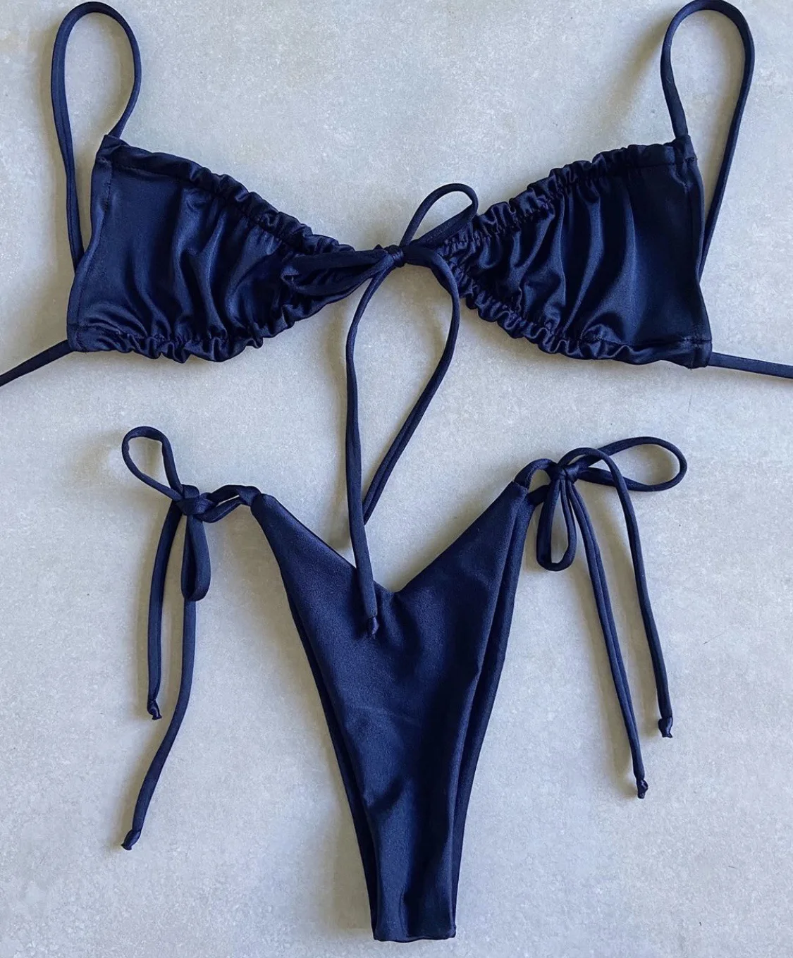 très bonne qualité. J'ai enlevé 1 étoile car le haut n'est pas très bien réglable à cause des points de couture au niveau du buste en dessous de la poitrine. Le bas est entre string et tanga, plus échancré que le bleu foncé. Reçu en 11 jours en France.