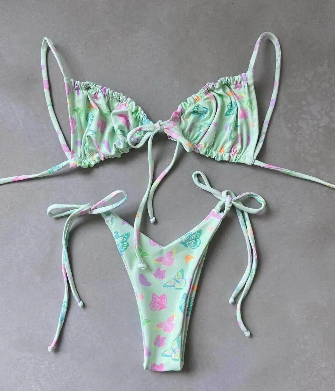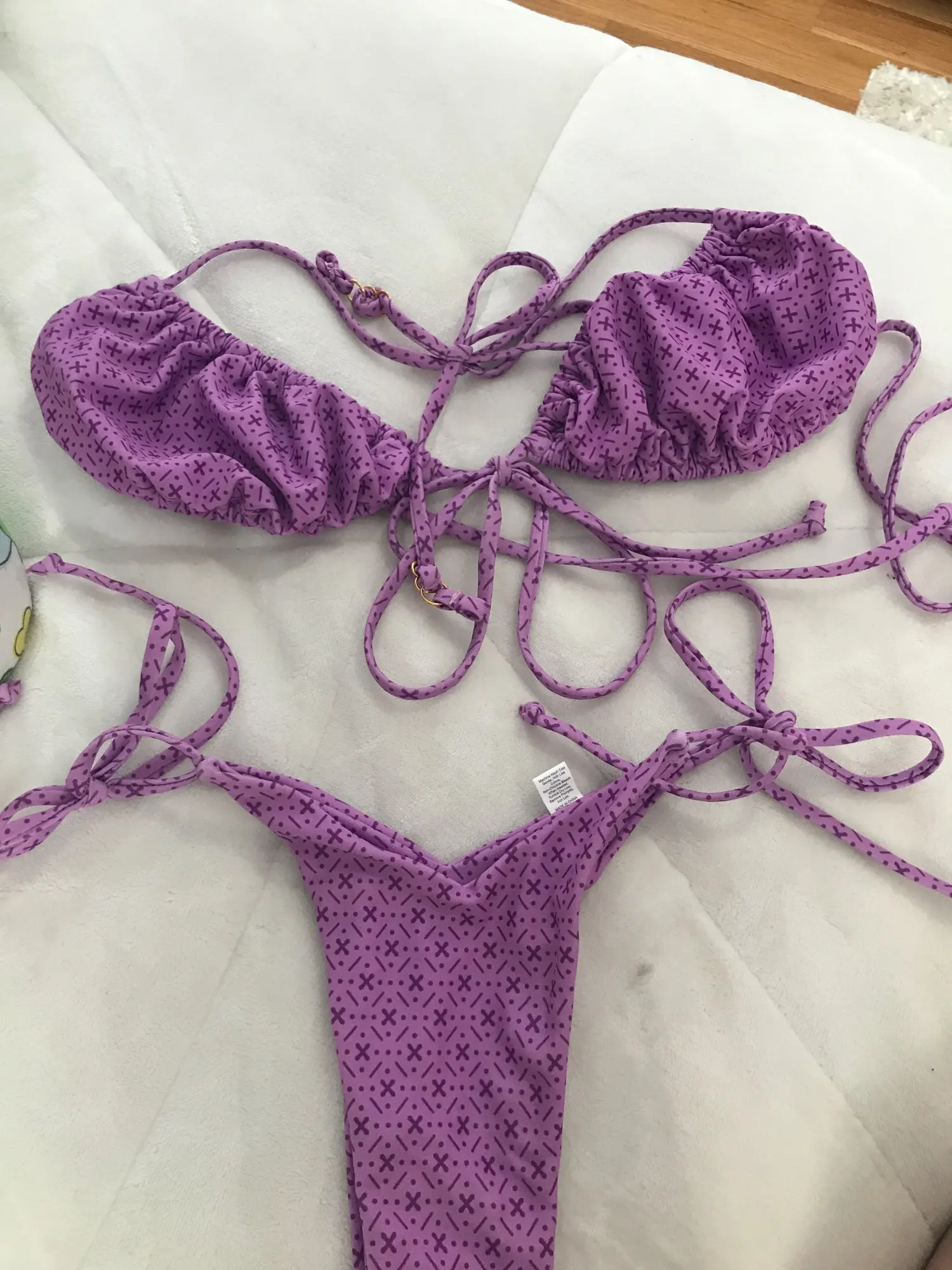 Бикини с низкой талией, 2021, треугольный купальник, женский купальник со шнурком, Женский костюм-двойка с принтом, купальник, новинка купальный костюм с пуш-ап