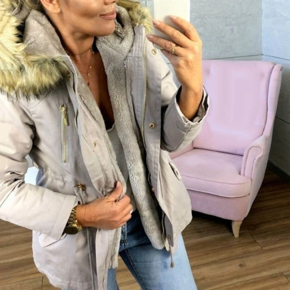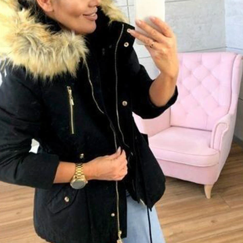Женская зимняя куртка, пальто, Повседневная однотонная парка, куртка, верхняя одежда, воротник из искусственного меха, пальто с капюшоном, свободная теплая ветрозащитная куртка