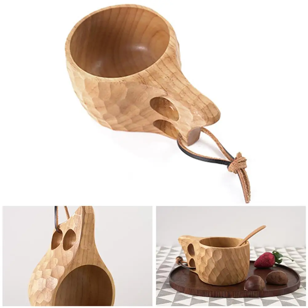 Ручная деревянная чашка kuksa, Резиновая деревянная Питьевая чашка для кофе, чая, молока с ремешком, походная чайная чашка для выживания на природе