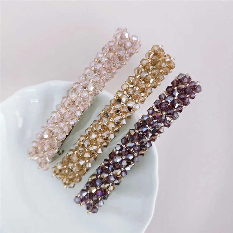 Заколки для волос женские, весенние, с кристаллами, ручной работы, с бусинами