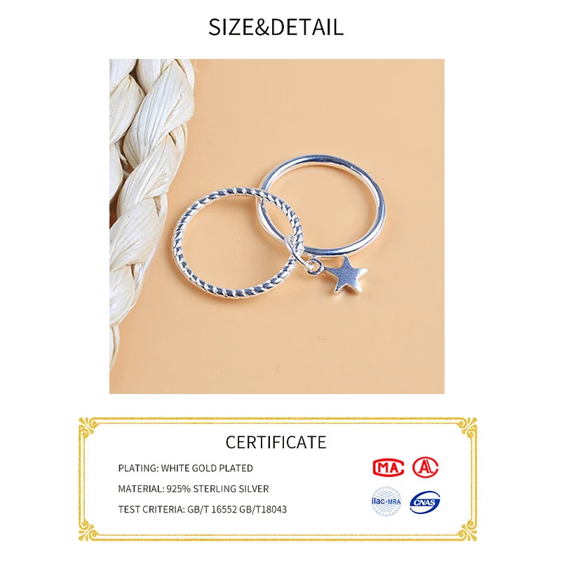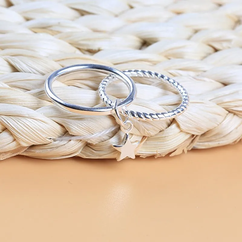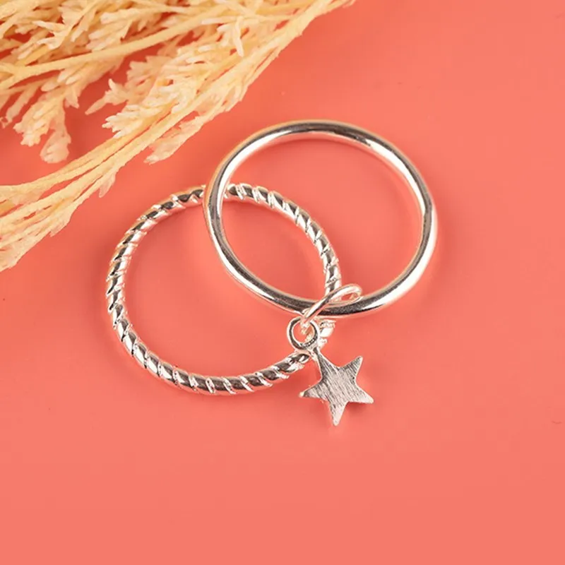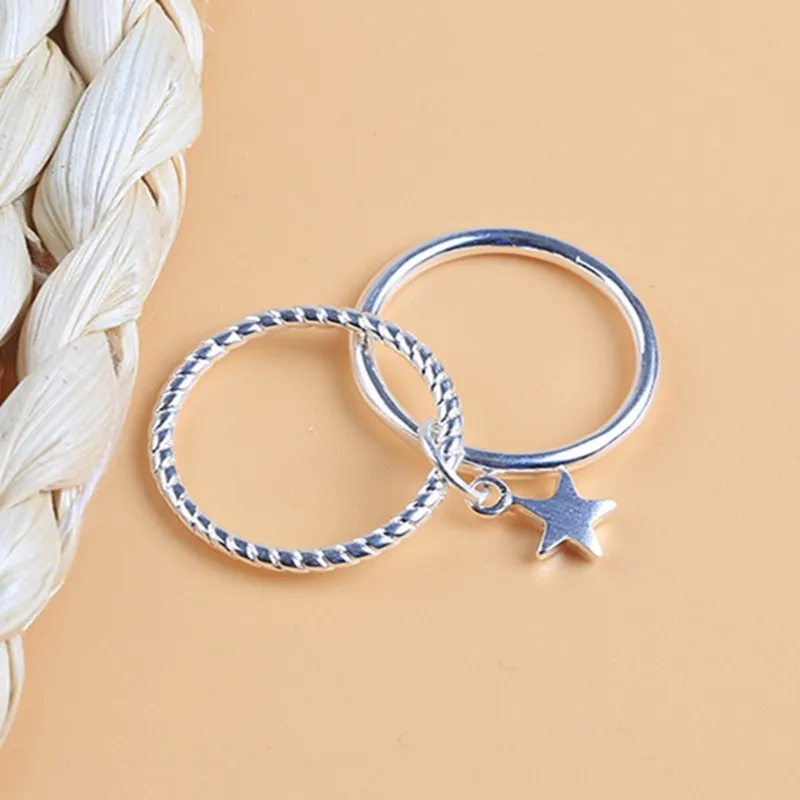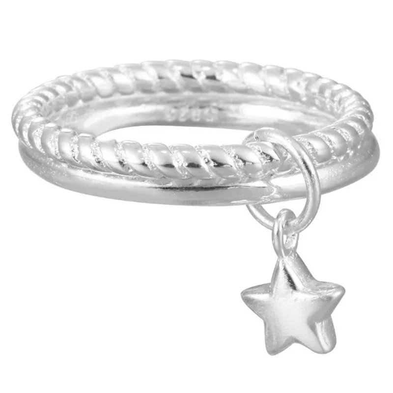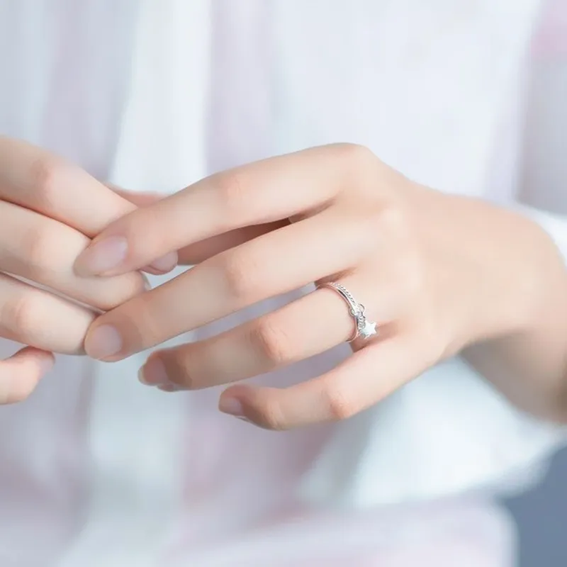 Настоящее 925 пробы серебро звезды геометрической формы регулируемое кольцо минималистский ювелирные изделия вечерние ний подарок