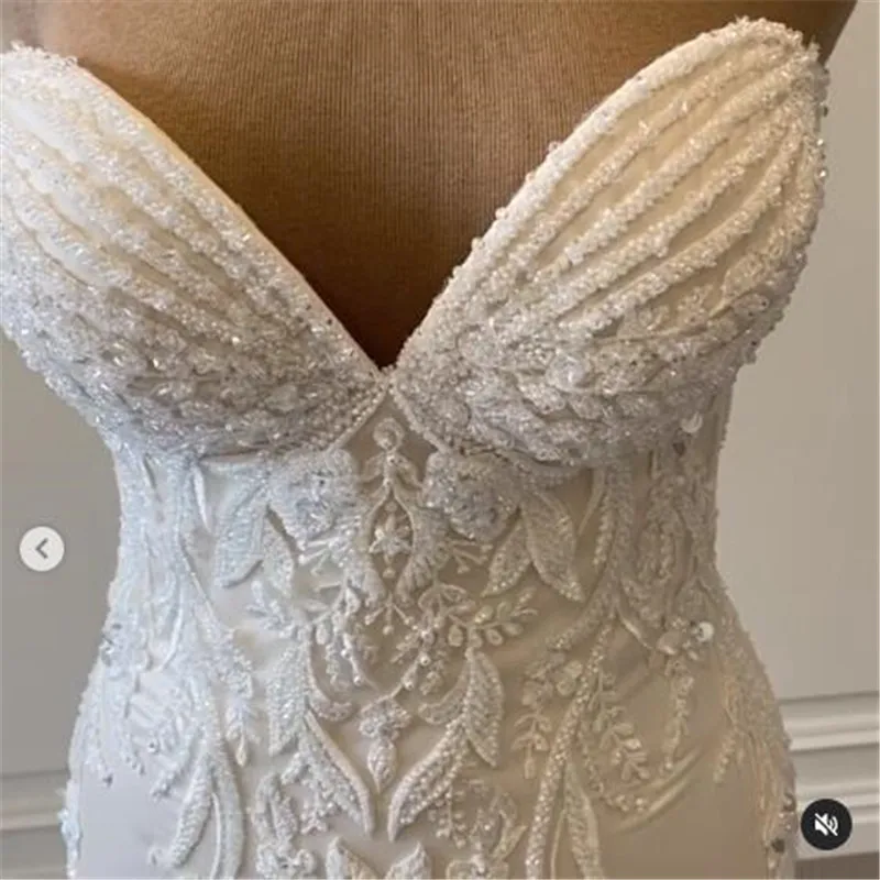 2021 Allure Shell Форма бюст Жемчуг Кружева Русалка свадебное платье Сексуальная Открытая спина молния Тюль Поезд Свадебные платья