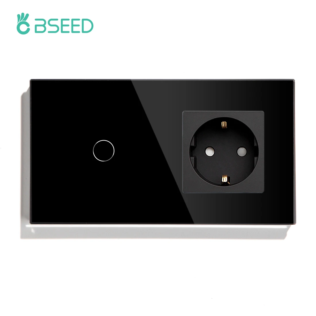 Сенсорсветильник ключатель BSEED, настенная стеклянная розетка европейского стандарта, 123 клавиши, 1 канал, выключатель питания, максимальная нагрузка 300 Втдвойной настенный выключатель