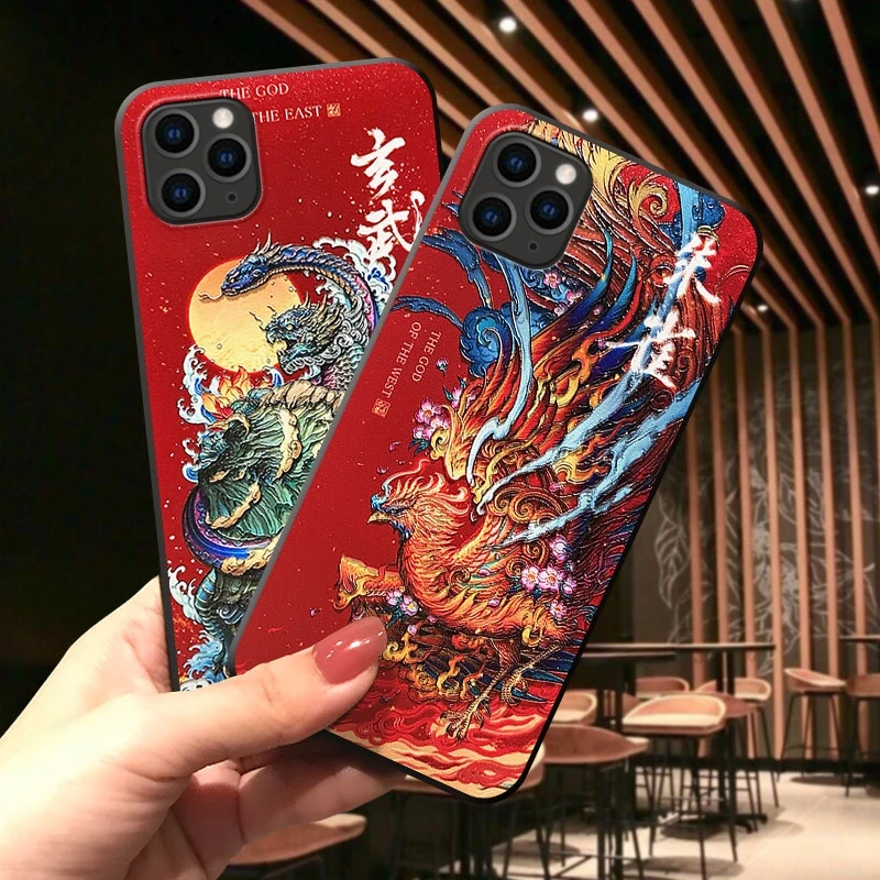 Мягкий противоударный чехол для iPhone 13, 12 Pro Max, 12 Pro, Mini, 11 Pro Max, с защитой от царапин и тиснением, с изображением дракона и карпа