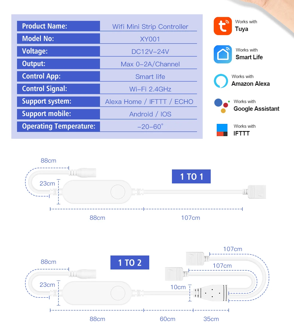 Светодиодная лента Tuya Smart Life, 5-24 В, Wi-Fi, 4 контакта, RGB, беспроводной пульт дистанционного управления для умного дома, работа с Alexa, Google Home
