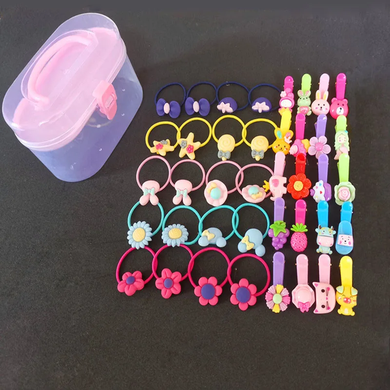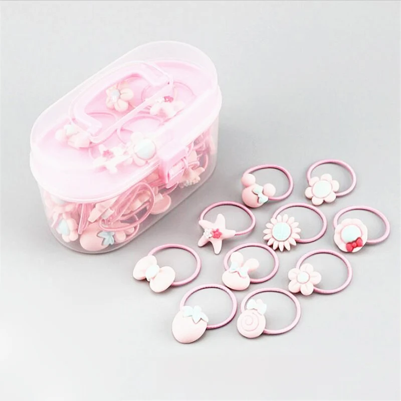 Резинки для волос Эластичные 40 шт.лот в коробке для девочек, заколки для волос с цветами, Детские милые заколки для волос, заколки, повязки на голову, Детские аксессуары для волос