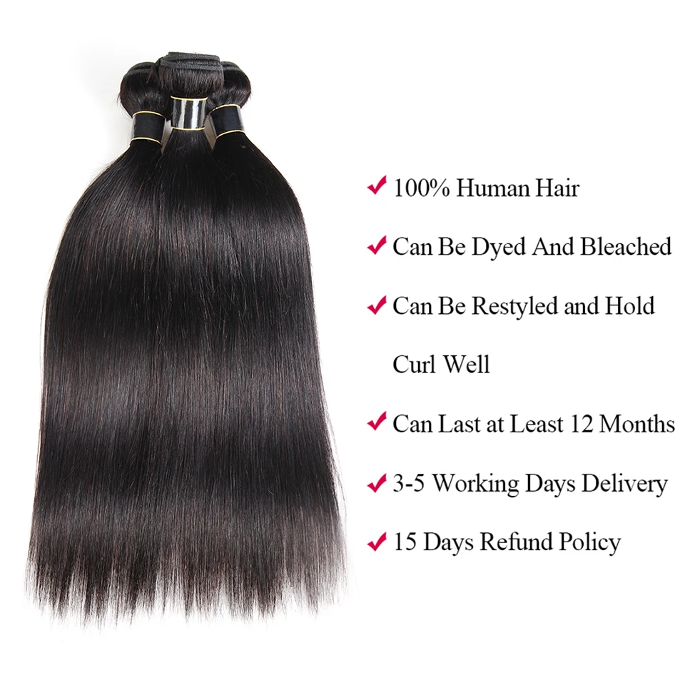 Hair Material100% Human Hair, Peruvian Straight Hair Bundles with Frontal
