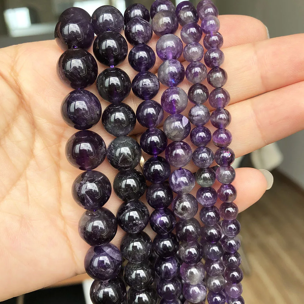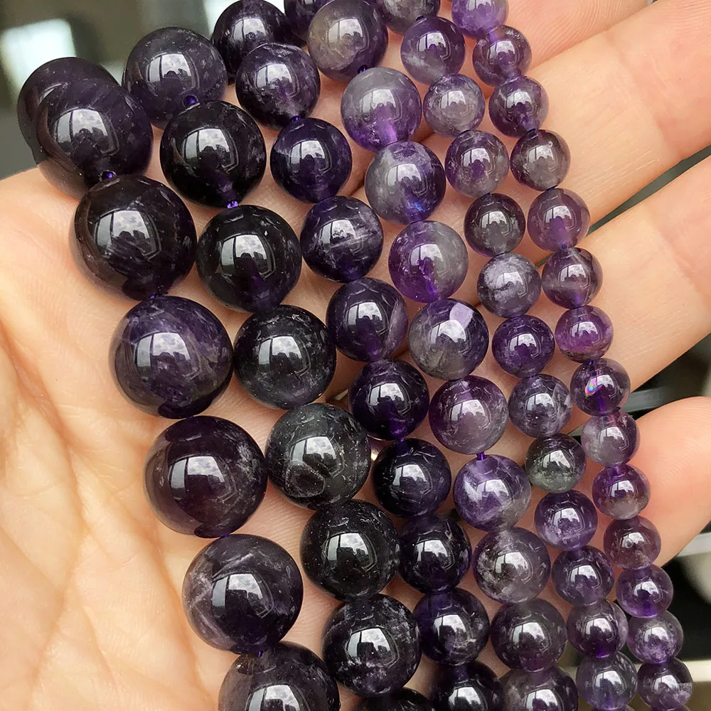 Пурпурные аметисты круглые кварцевые бусины с отверстием из натурального камня для изготовления ювелирных изделий сделай сам, 15 дюймов, 4, 6, 8, 10, 12 мм, аксессуары для браслетов, цепочек