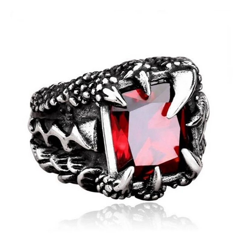 Мужское кольцо с инкрустацией в виде когтя дракона