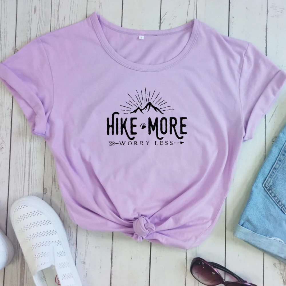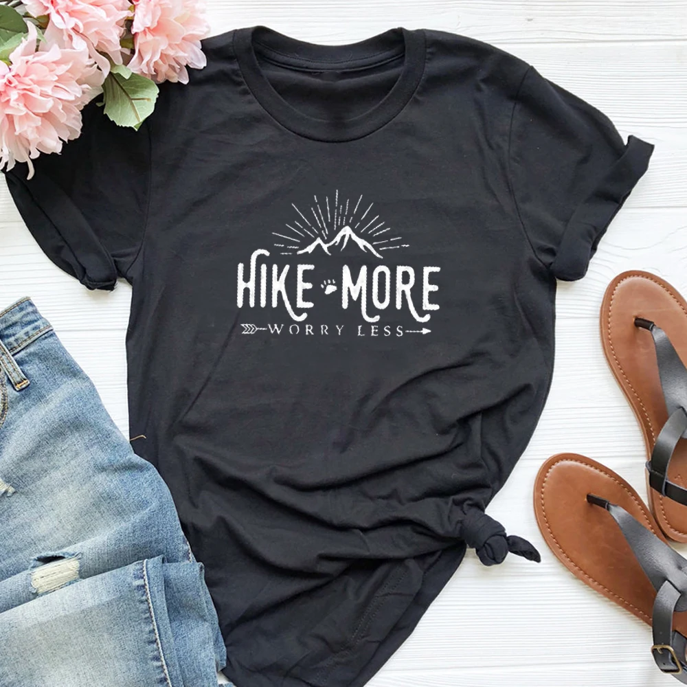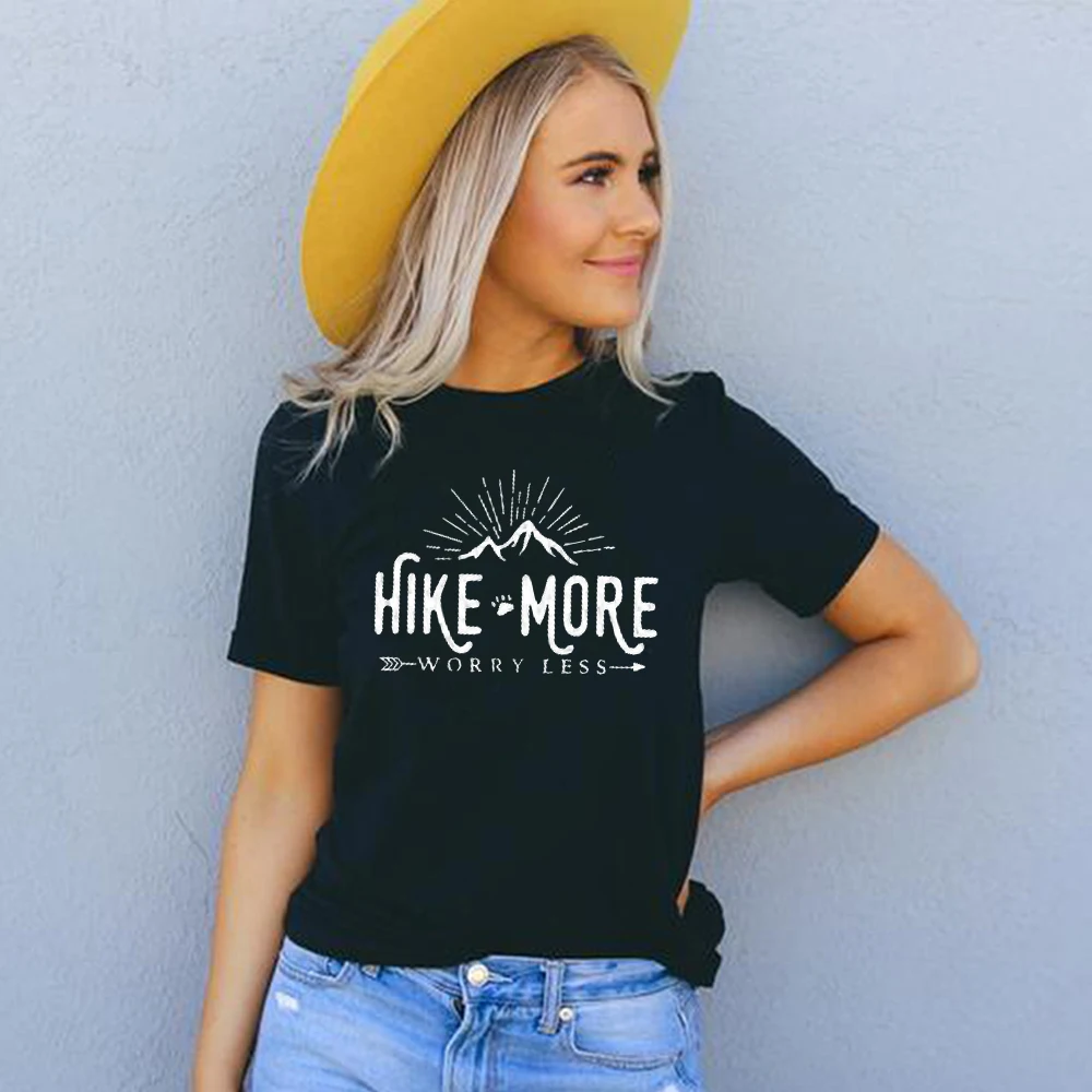 Женская футболка с надписью Hike More Worry Less Mountains, религиозная одежда, топы с изображением Иисуса