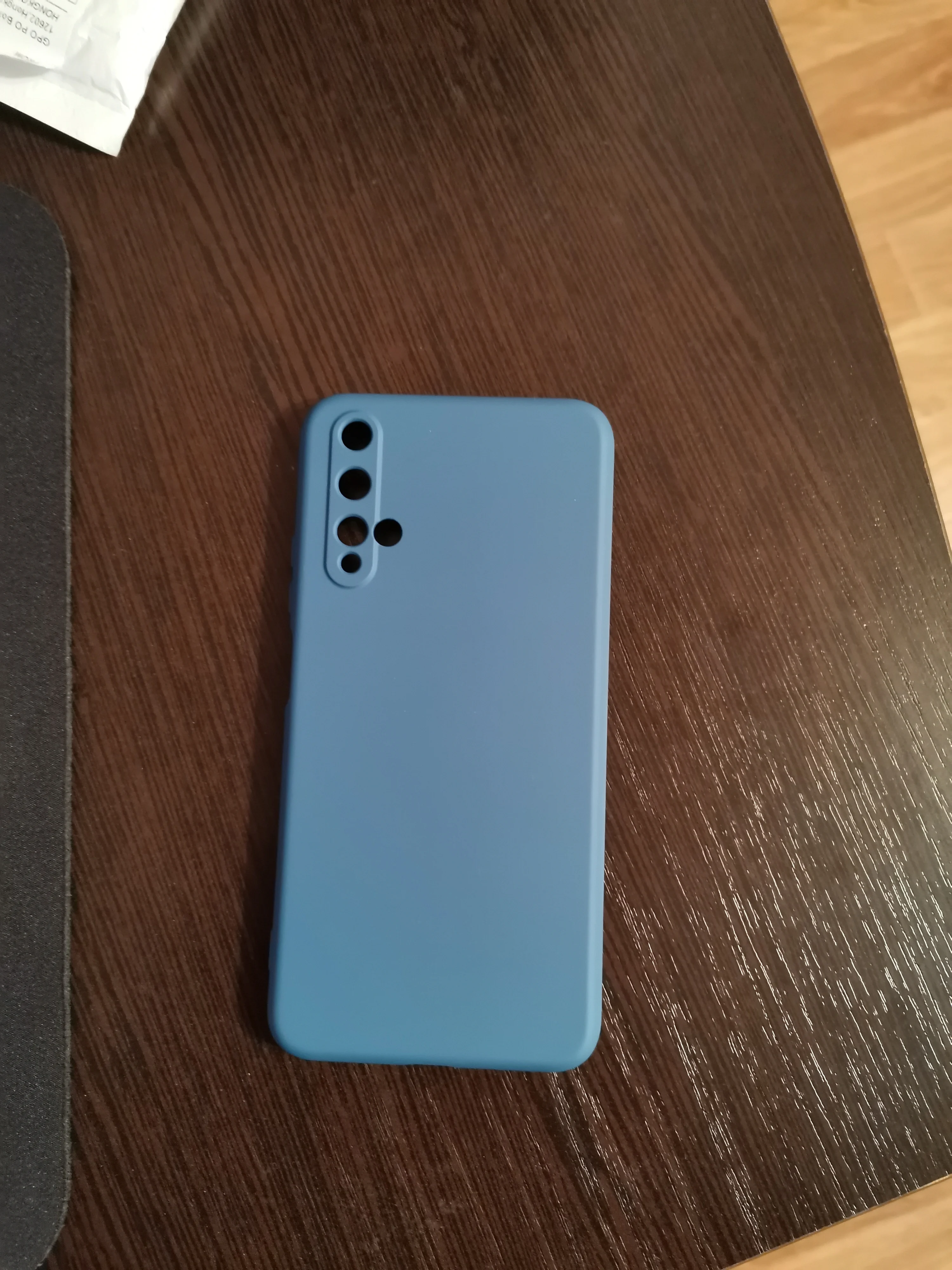 Чехол тактильно приятный, с «мягкушкой» внутри. Хорошего качества, без запаха. Жаль только отверстия для камер не совсем совпадают с тел. Honor 20 lite. Смотри фото-;) На работу камер не влияет.