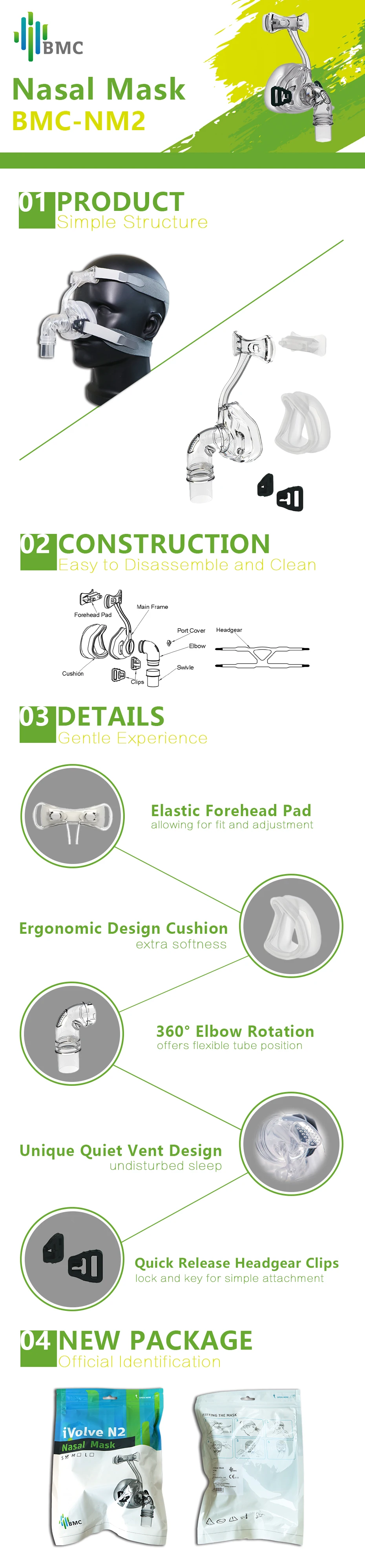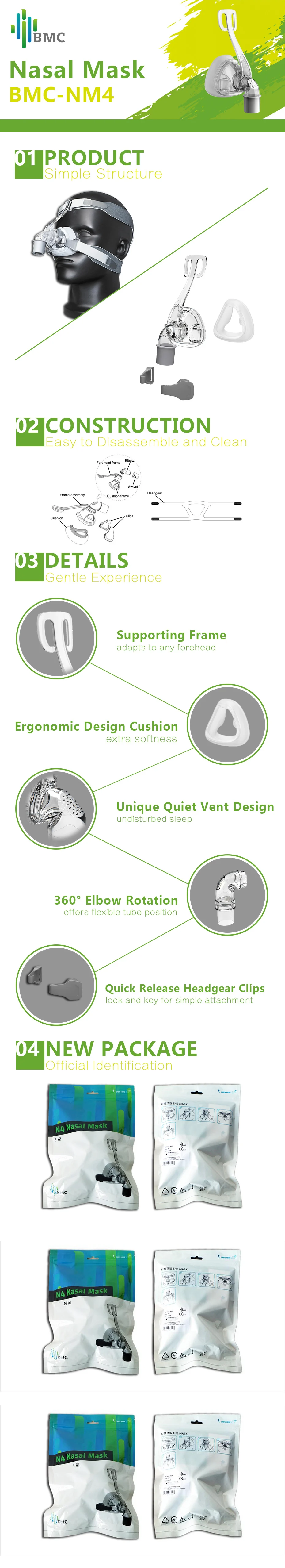 BMC NM4 или NM2 или N5B носовая маска с головным убором силиконовые гелевые подушки для CPAP Авто CPAP сна апноэ осас храп людей