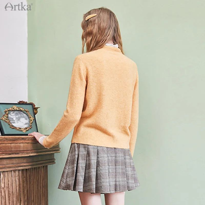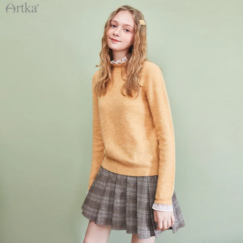 Женский свитер с имитацией овечьей шерсти ARTKA, черный элегантный мягкий пуловер из двух частей, YB20709Q, зима 2020