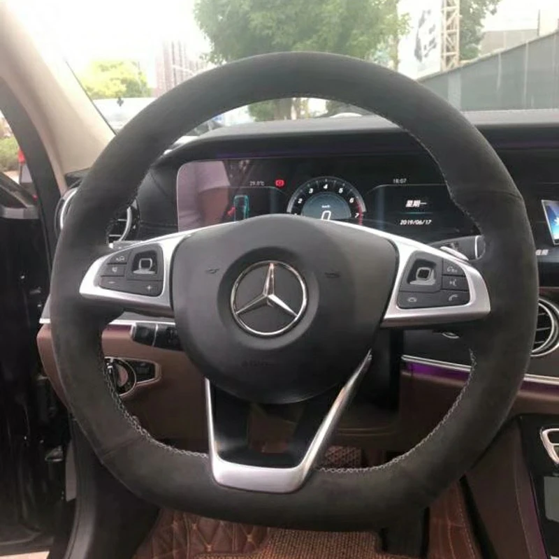 DIY все черные замшевые кожаные рулевые колеса белый стежок на обертывание крышка подходит для Mercedes-Benz C200Изолирует от перепадов температуры и придает спортивный вид. Высококачественная кожа обеспечивает привлекательный внешний вид, прочна и приятна на ощупь. Специально Протестировано, чтобы противостоять выцветанию и усадке, чтобы выглядеть хорошо из года в год. Подкрепления с отверстиями для шнуровки обеспечивают плотное прилегание от фабрики.