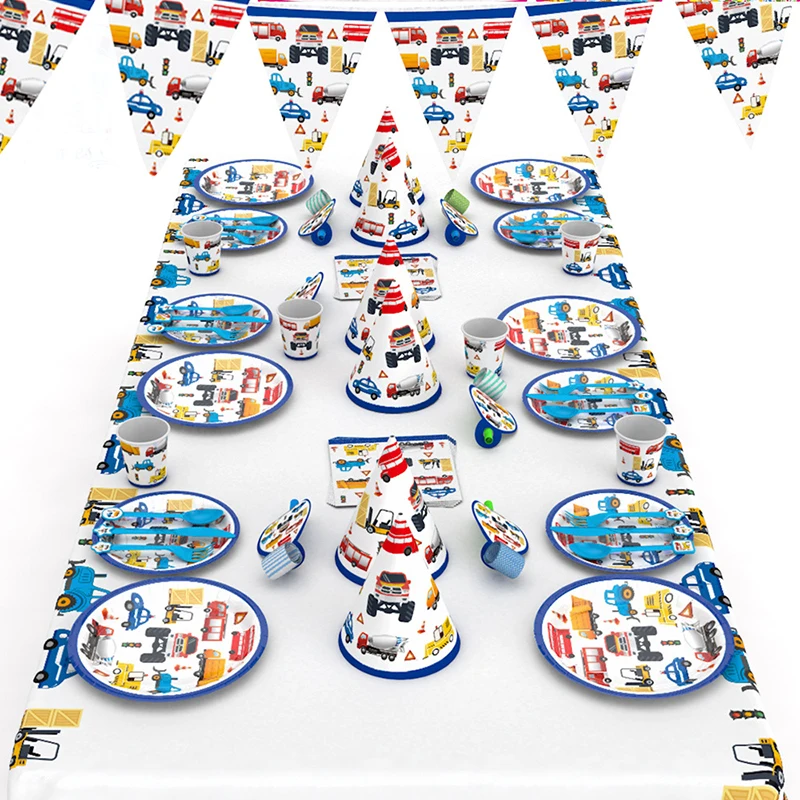 Одноразовая посуда, Мультяшные синие инженерные салфетки для транспортных средств, скатерть, свадебные Детские принадлежности для душа, вечерние украшения на день рождения