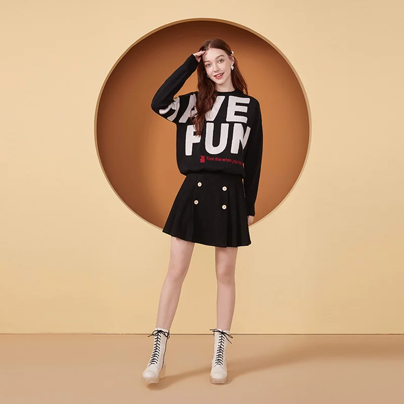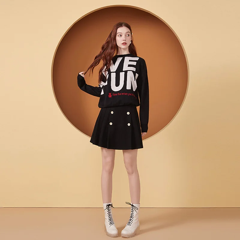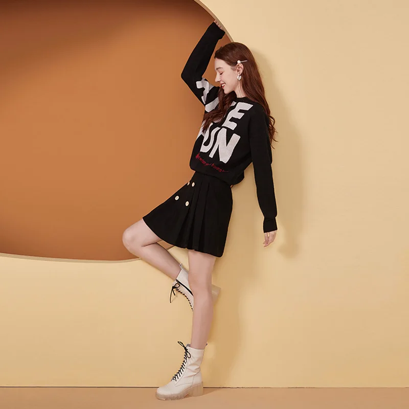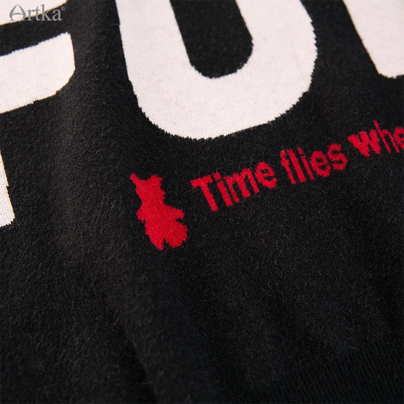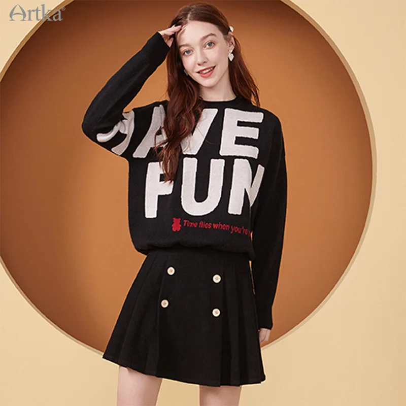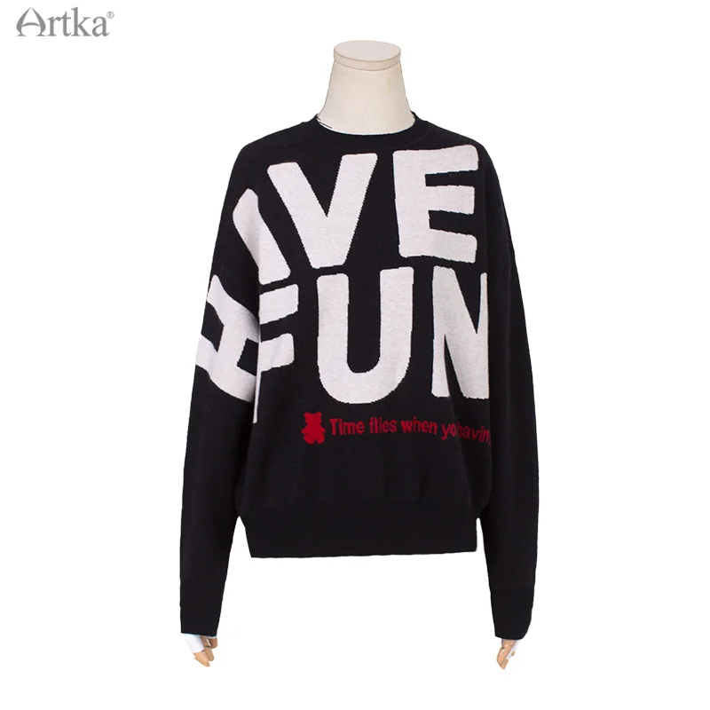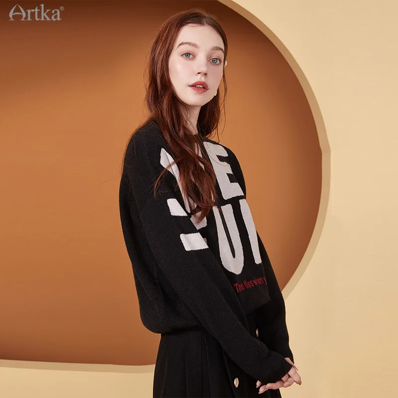 ARTKA 2020 Зимний новый женский свитер модный вязаный свитер с вышитыми буквами Свободный пуловер с круглым вырезом мягкий черный свитер YB25208D