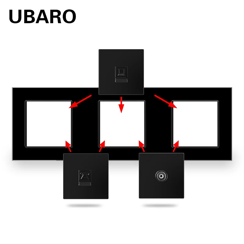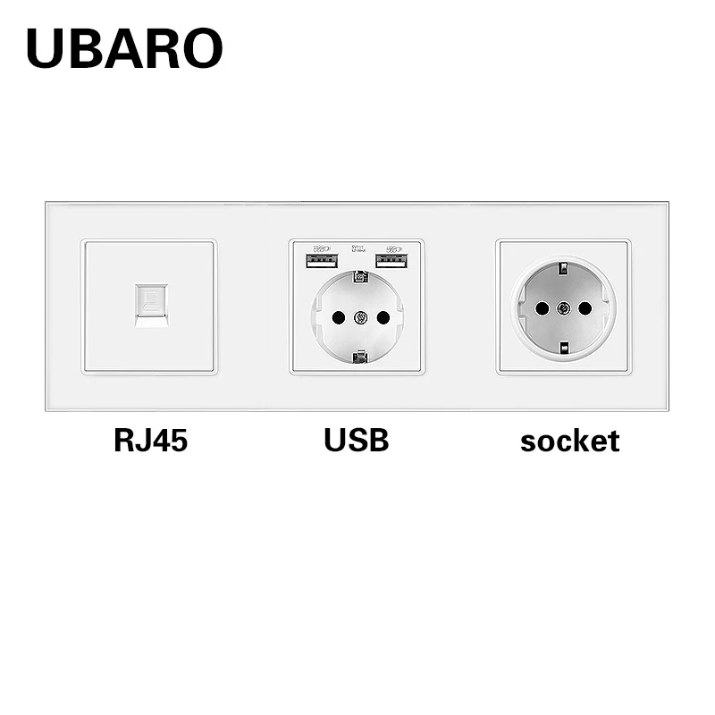 UBARO немецкая стандартная стенная розетка из закаленного стекла Combinationt RJ45 RJ11 ТВ USB подключение терминал домашняя розетка AC100-250V 16A