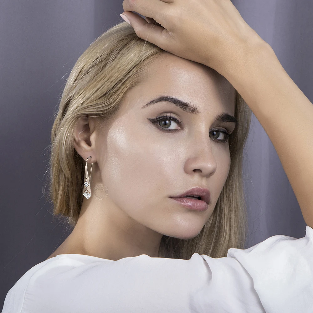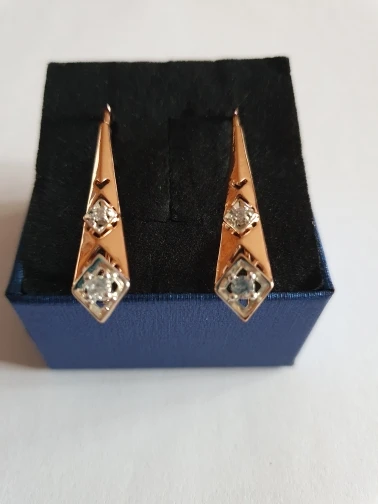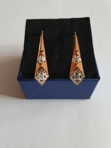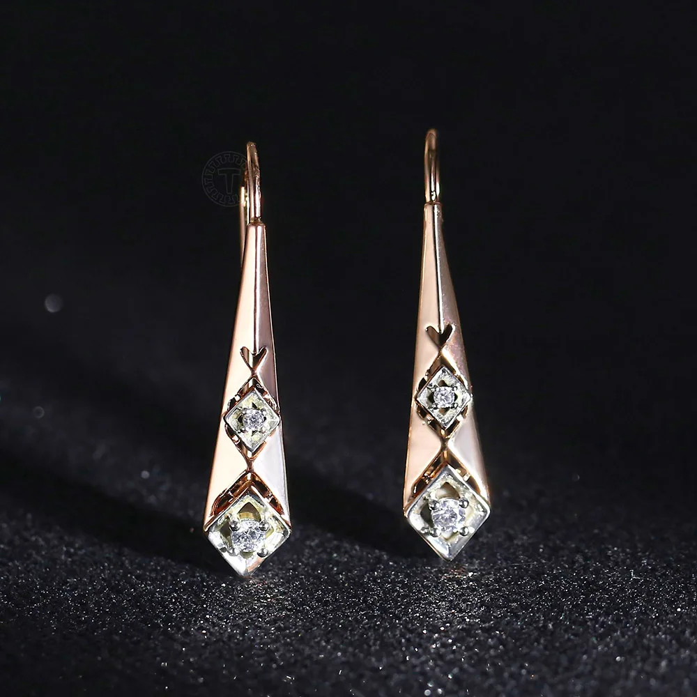 Серьги женские Геометрические, розовое золото 585 пробы, с ромбовидным сердечком, с фианитами, GE315