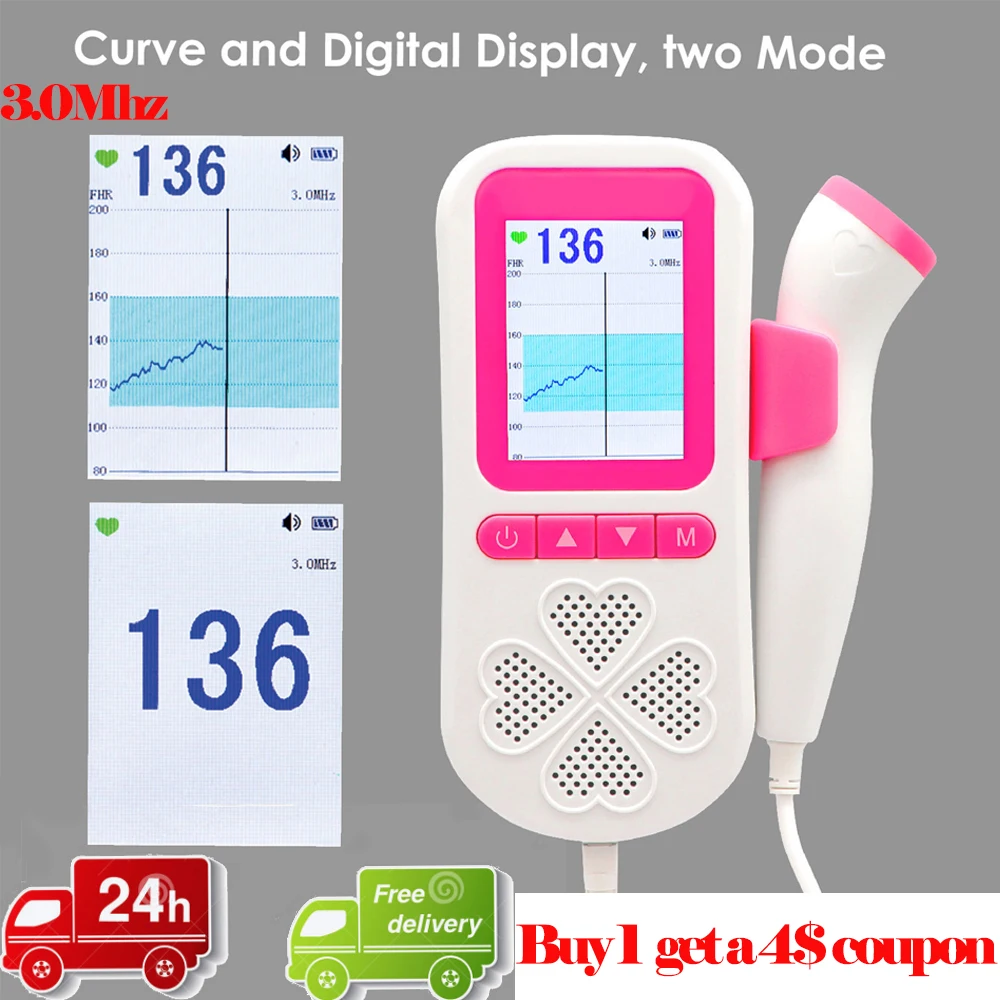 Цифровой изгиб 3,0 МГц ультразвуковой фетальный допплер детский сердечный ритм 0 радиация беременный монитор сердечного ритма для младенцев двойной режим