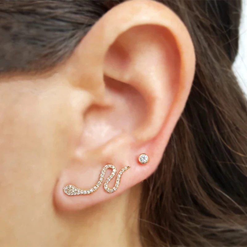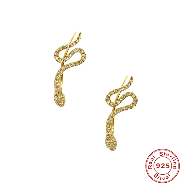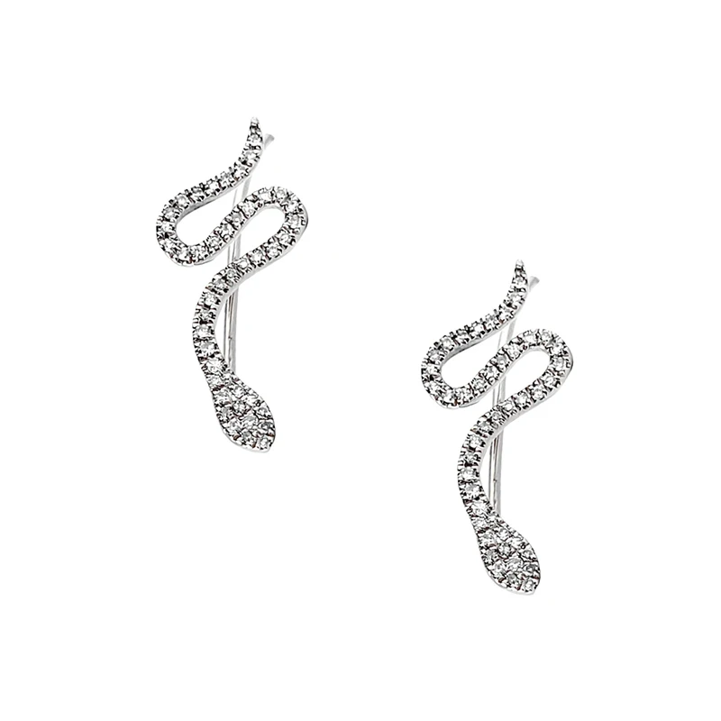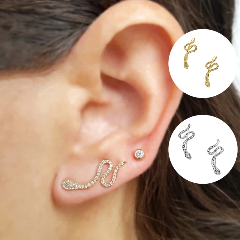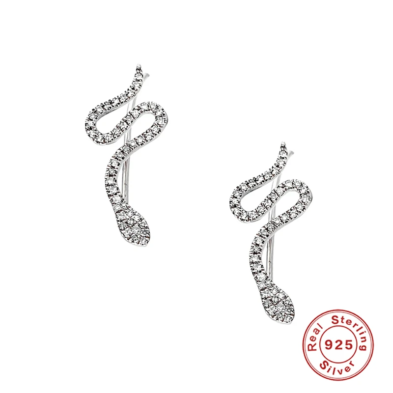 Женские серьги-гвоздики из серебра 925 пробы в виде змеи